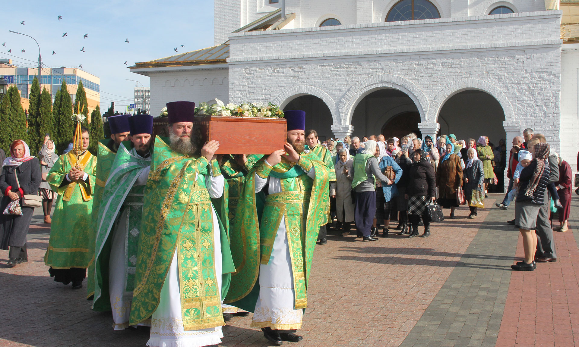 После Богослужения состоялся Крестный ход вокруг Кафедрального Собора, в котором приняли участие прихожане.