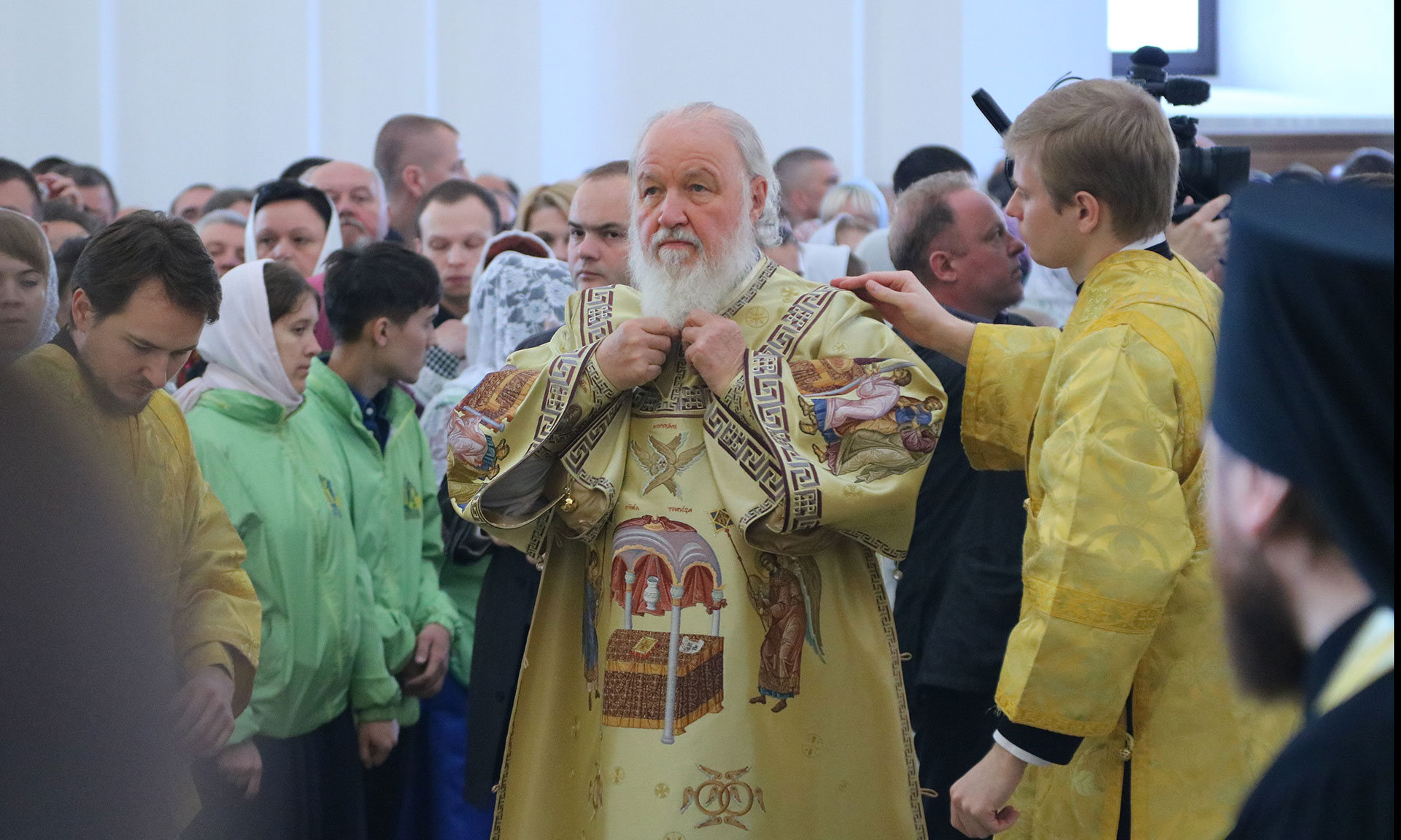Храмы строятся не на год или два, а на столетия. Сохранилось немало храмов, возраст которых больше тысячи лет, — если говорить о православном мире в целом. В нашей стране, к сожалению, не все исторические святыни сохранились, уж слишком часто она подвергалась нашествию иноплеменников. Сегодня, когда я летел на вертолете из Москвы в Брянск и видел эти бескрайние брянские леса, я, конечно, не мог не вспомнить великий героизм нашего народа во время Великой Отечественной войны, когда именно здесь, в лесах Брянщины, которые стали неприступной крепостью для враждебной армии, победившей большую часть Европы, люди отдавали свою жизнь, чтобы враг не прошел дальше. Подвиги на Брянской земле, в первую очередь героическая партизанская война, стали огромным вкладом в победу нашего народа. И, взирая с высоты птичьего полета на эти бескрайние леса, невозможно было об этом не вспомнить.