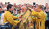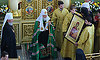 Каждому из верующих на память о богослужении Святейший Патриарх Московского и всея Руси Кирилл передал образа Свенской иконы Божией Матери с Патриаршим благословением.