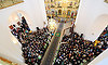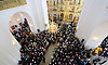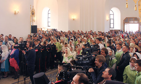 На телеканале «Союз» шла прямая трансляция Патриаршего богослужения. Часть верующих следила за трансляцией на больших экранах, установленных на территории храма.