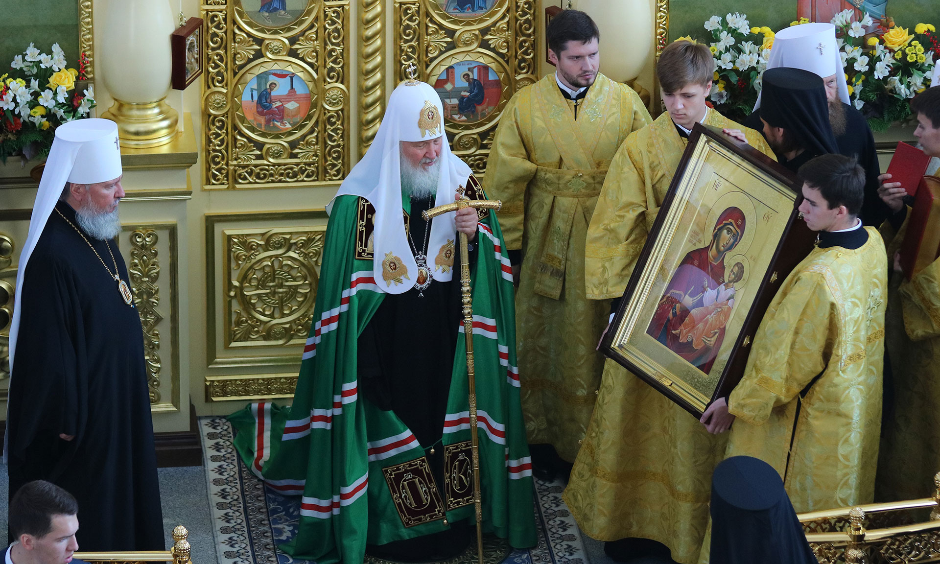 Ваше Святейшество, Вы сегодня совершили великий чин освящения собора и божественную литургию. Мы с нетерпением ждали Вашего приезда, понимая, как Вы загружены. Поэтому мы приносим свои сыновние благодарности и в то же время просим прощения за то, что потревожили Вас. Но Вы, посетив Брянщину, принесли всем огромную радость! Вы видите, как много людей, детей, молодежи… И мы благодарим Вас за это и просим не оставлять нас в своих святых молитвах и принять на молитвенную память вот этот животворящий крест, образ Божьей Матери Свенской. Пусть этот набор напоминает о Вашем посещении Брянщины и освящении Успенского кафедрального собора — главной святыни Брянской древней намоленной земли.