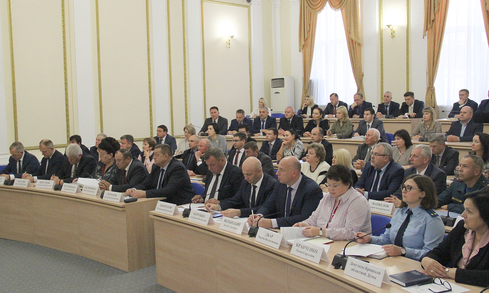 В обсуждении повестки совещания приняли участие главный федеральный инспектор по Брянской области Андрей Дьячук, заместитель председателя Брянской областной Думы Виталий Беляй, депутат Государственной Думы Федерального Собрания Российской Федерации Валентин Суббот, заместители Губернатора, руководители органов исполнительной власти.