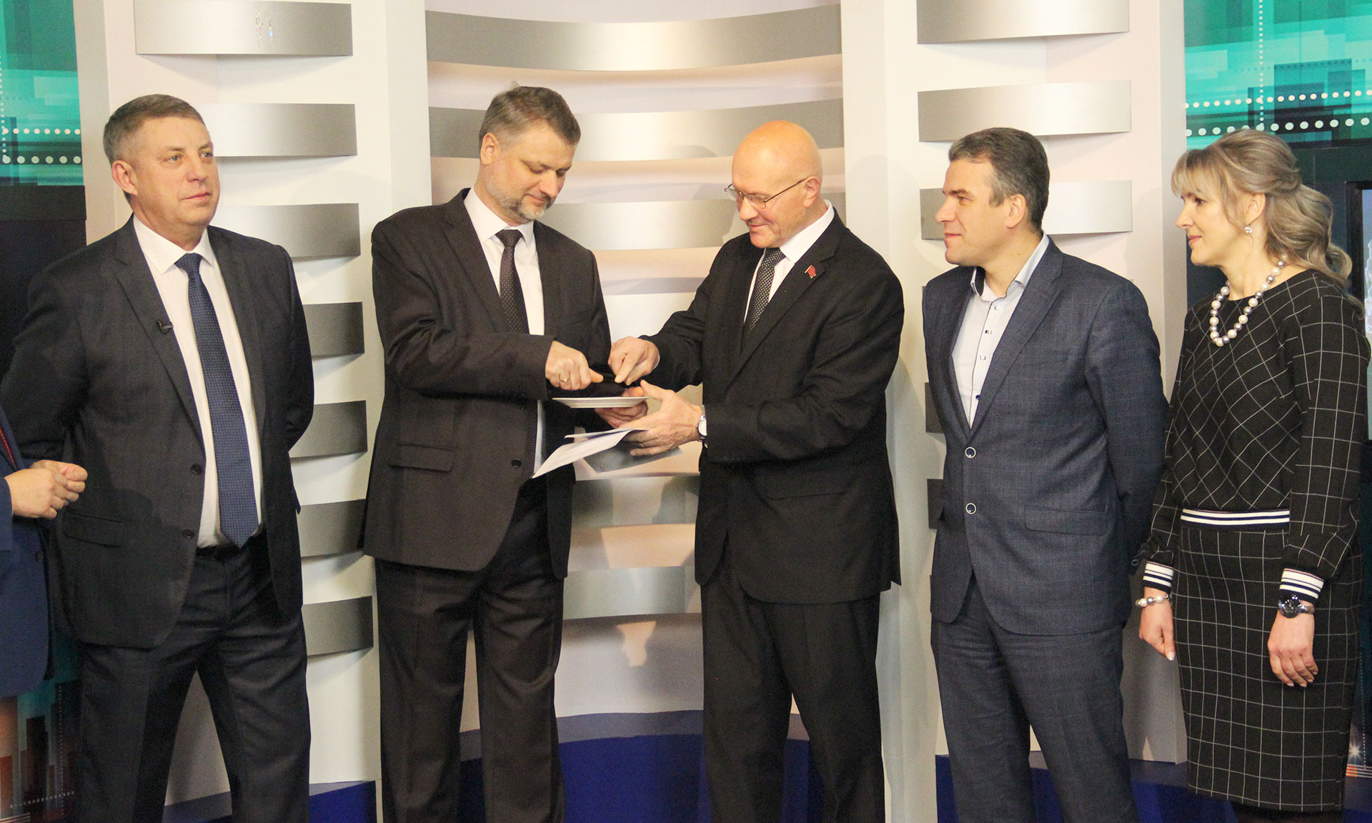 По телевизионной традиции в первый день съемок об штатив камеры разбивается тарелка. Не стало исключением и врезка «Брянской Губернии» в Общественное телевидение — директор телекомпании Артем Сухоломкин в честь нового проекта разбил тарелку, а символические осколки об этом событии вручил на память почетным гостям. Побывали гости и в студии «32 радио». Во время радиоэфира Александр Богомаз ответил на вопросы ведущих, рассказал о тех успехах и достижениях, и самое главное, задачах, которые сегодня стоят перед областью. Пообщались со слушателями также Андрей Дьячук и Владимир Пронин. А в конце эфира Александр Богомаз отметил, что все сегодняшние успехи в развитии области — это, несомненно, результат труда наших жителей, которые всей душой так любят нашу родную Брянщину.