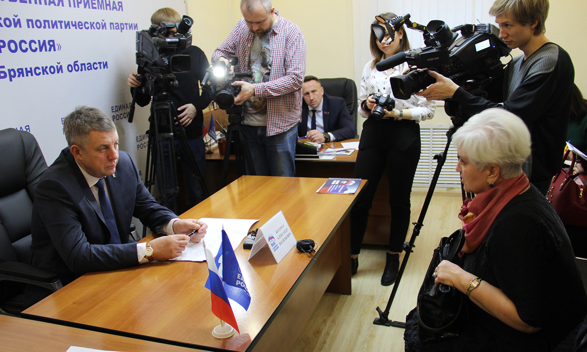 1 декабря в Брянской области проходит прием граждан, посвященный 18-летию партии «Единая Россия». В региональной общественной приемной Д. А. Медведева прием граждан провел Губернатор Брянской области Александр Богомаз.