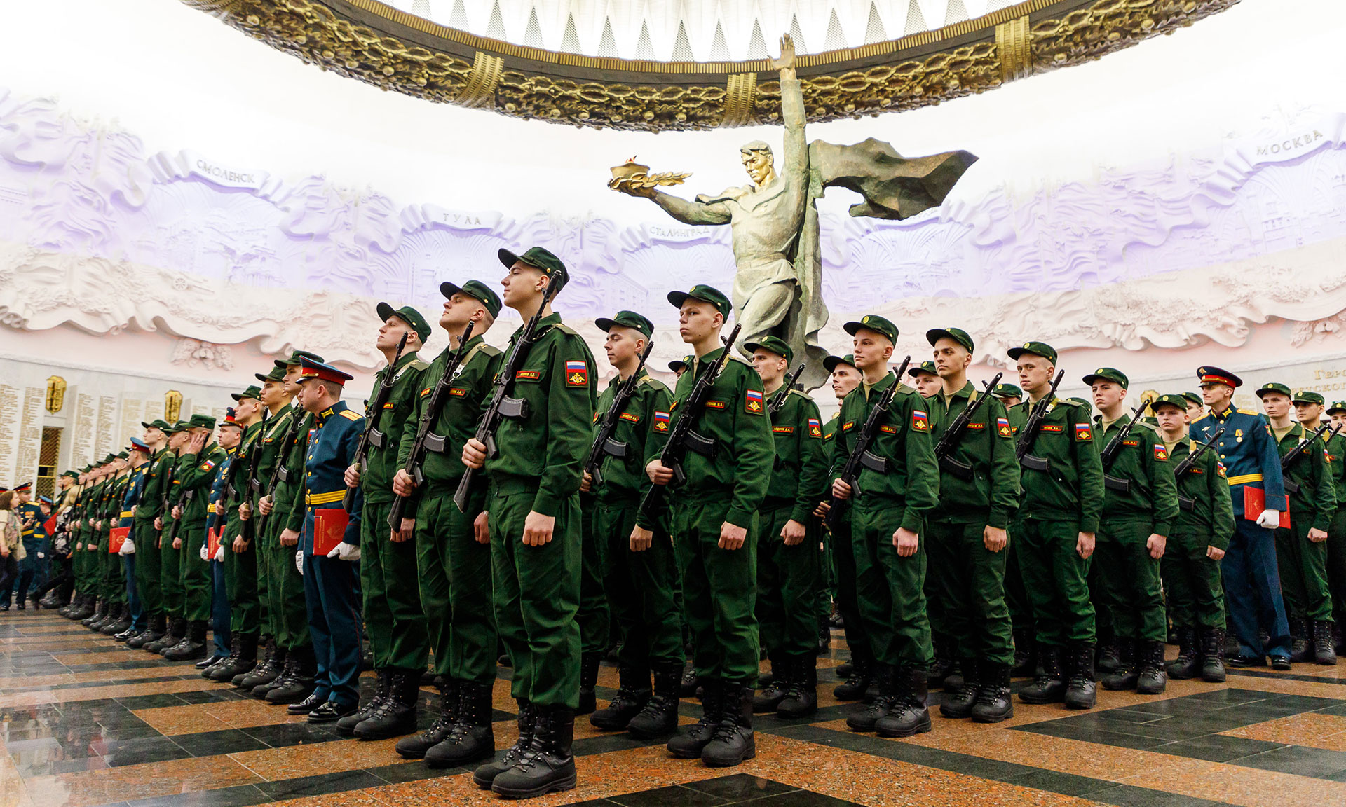 В Музее Победы 7 декабря военную присягу приняли свыше 450 призывников. Новобранцы стали солдатами Семеновского полка. Среди них — жители Брянской области.