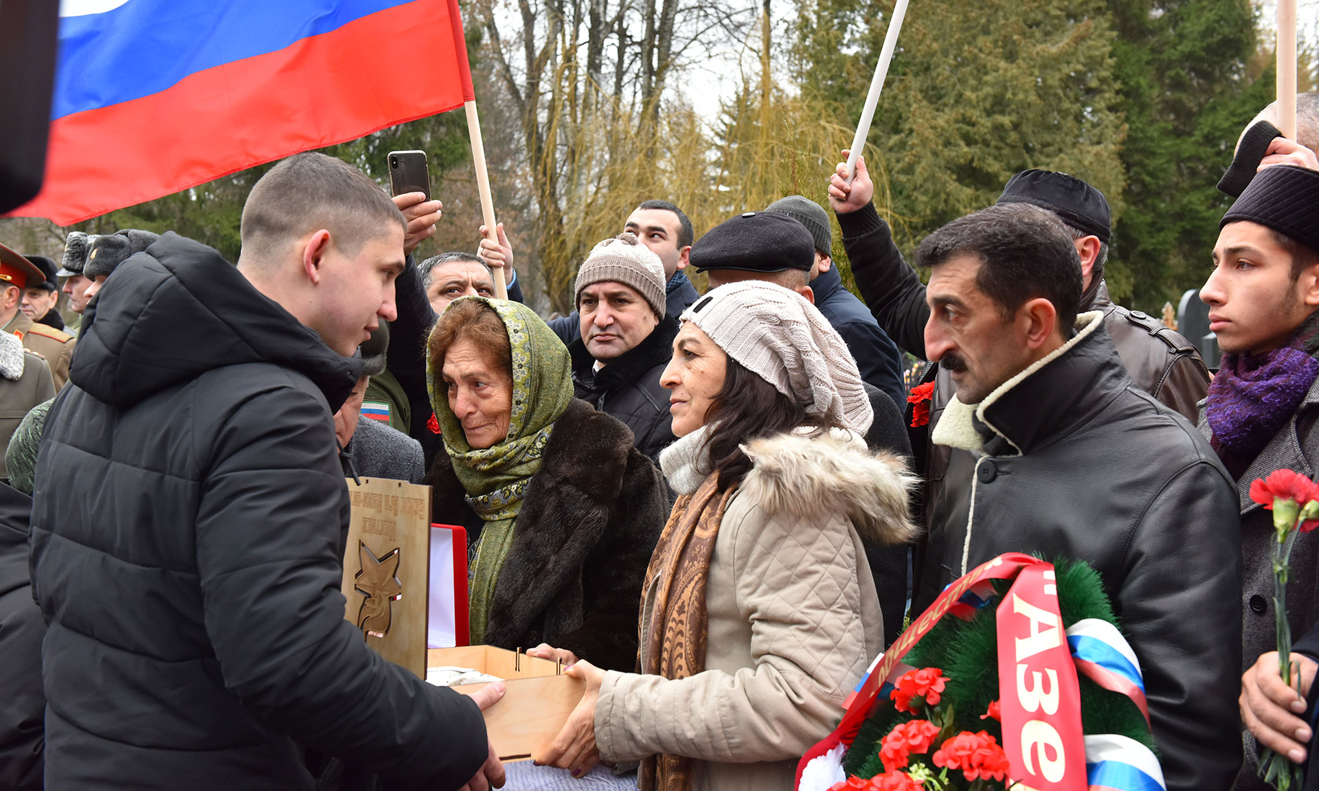 Председатель Московской общественной организации «Азербайджан» Гусейнов Октай Рамазан оглы, председатель Брянской региональной общественной организации «Конгресс Азербайджанцев» Халилов Юсиф Сайяф оглы, председатель общественной организации «Наследие азербайджанцев России» Хыдыр Юсиф, внучатая племянница солдата Керимова Ульвия Алифага кызы рассказали о вкладе азербайджанцев в общую победу над врагом, о единстве братских народов, а также поблагодарили Губернатора Брянской области Александра Богомаза, Правительство региона, поисковиков за то, что вернули память о подвиге героя, благодаря которым мы сегодня живем.