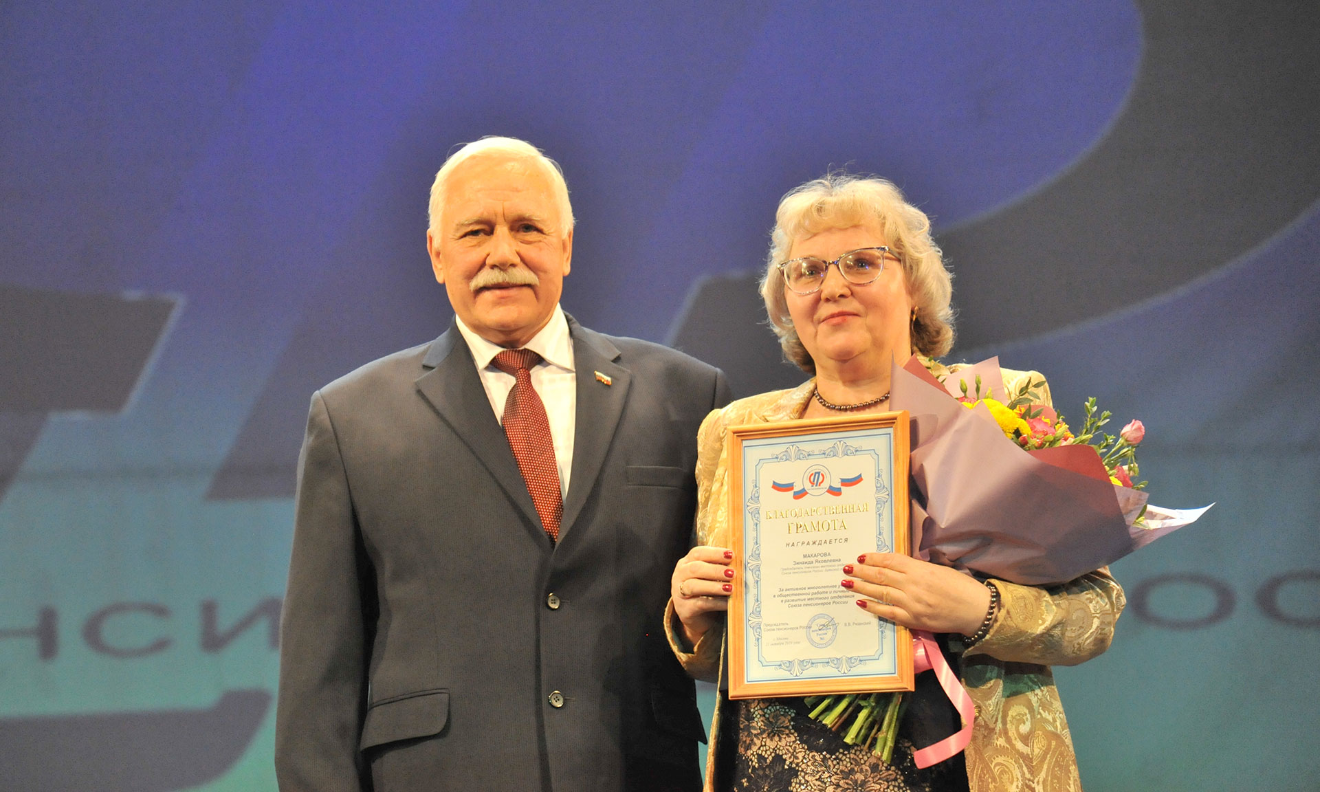 — Я от всей души поздравляю вас с юбилеем организации Союз пенсионеров России, которую долгие годы возглавляет председатель комитета Совета Федерации Федерального Собрания по социальной политике Валерий Владимирович Рязанский.