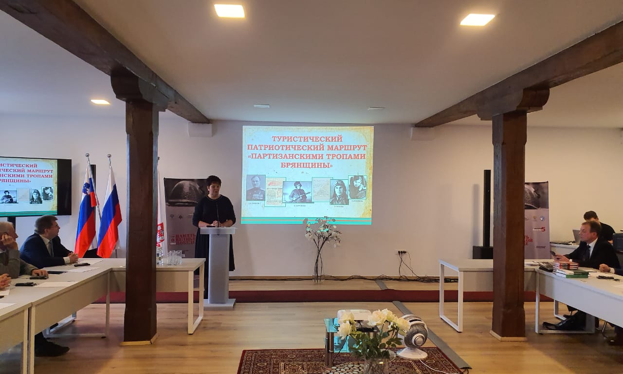 В рамках международной дискуссии «Память о Великой Победе» маршрут «Партизанскими тропами Брянщины был презентован директором Брянского областного художественного музейно-выставочного центра Клюевой Еленой Петровной.