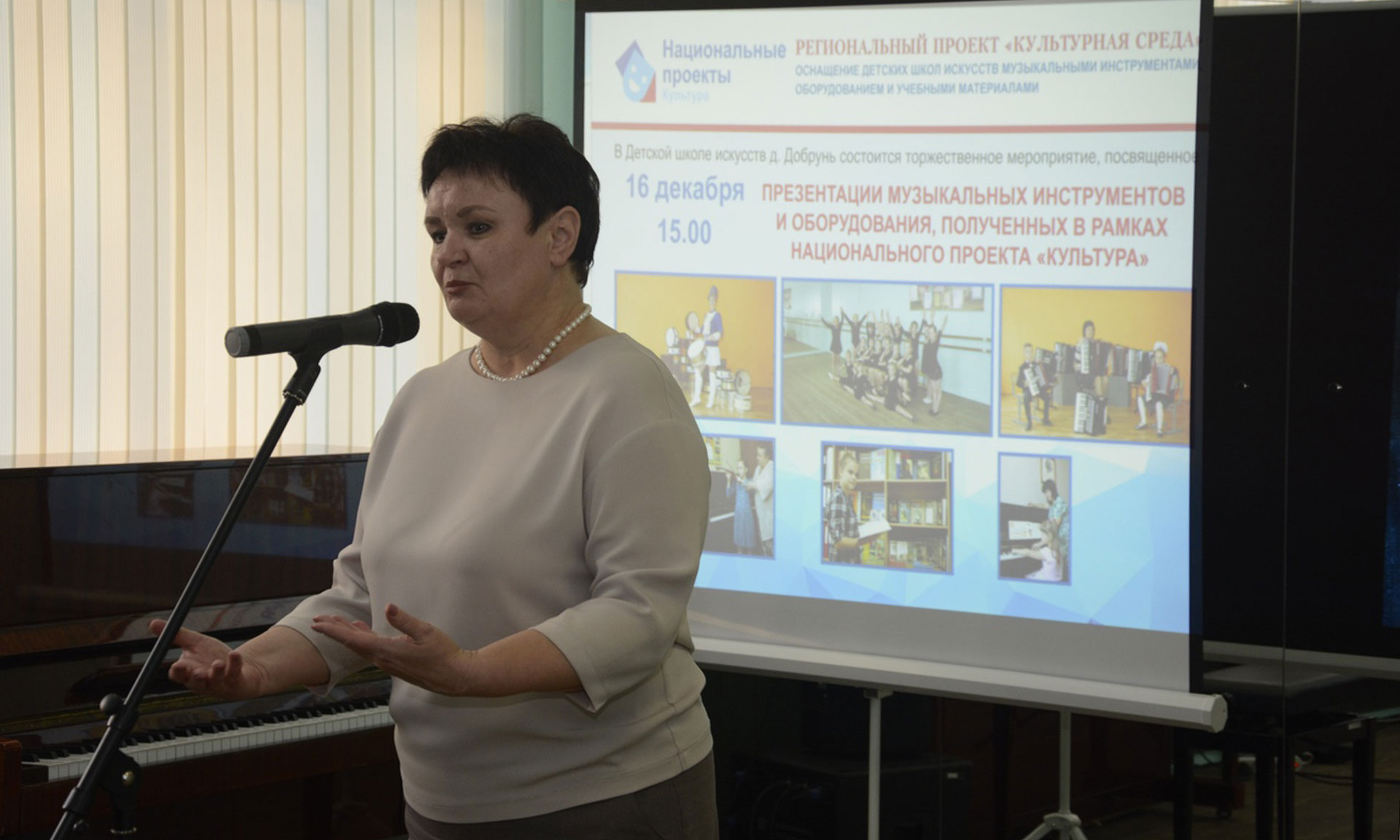 16 декабря 2019 года в Детской школе искусств д. Добрунь Брянского района состоялось торжественное мероприятие, посвященное презентации музыкальных инструментов, оборудования и учебных материалов, приобретенных в рамках национального проекта «Культура».