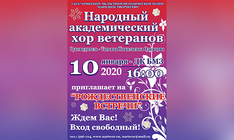 10 января 2020 г. в 16:00 народный академический хор ветеранов Брянского областного методического центра «Народное творчество» вновь приглашает на встречу с любимыми песнями.