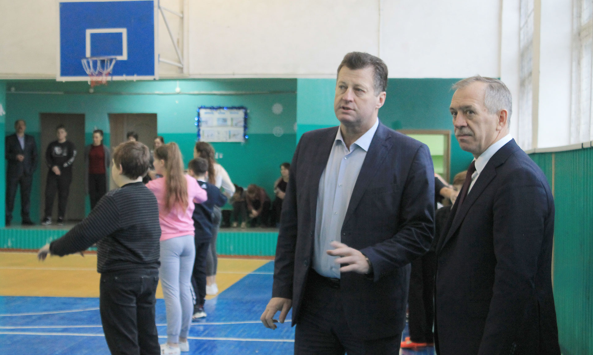 Первым таким объектом стала городская школа № 2 им. А. С. Пушкина. Напомним, в 2019 году школа вошла в число трех учебных заведений района, где на областные средства и при поддержке местного бюджета был произведен капитальный ремонт кровли. В дни новогодних каникул здесь проходят спортивные и культурно-массовые мероприятия. Так, гости побывали на сказочном представлении, подготовленном учащимися и педагогами школы, осмотрели спортивный зал, где разминались перед волейбольным матчем юные спортсмены.