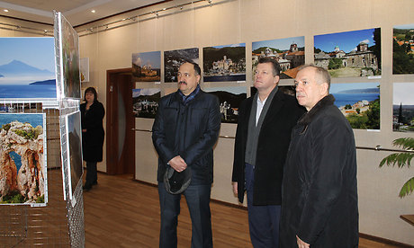 Еще одной точкой на карте маршрута официальных лиц стал Трубчевский планетарий, являющийся, кстати, единственным в Брянской области. Здесь можно увидеть и солнечное затмение, и северное сияние, и побывать в космосе, рассмотреть вблизи звезды и планеты… На одном из сеансов, проходящих в планетарии, побывал и Юрий Мокренко, а затем ознакомился с экспозицией краеведческого музея, где собраны самые разные экспонаты, рассказывающие об истории, культуре, традициях… Кроме того, в выставочном зале музея в настоящее время располагается фотовыставка Костаса Асимиса «Наш Афон».