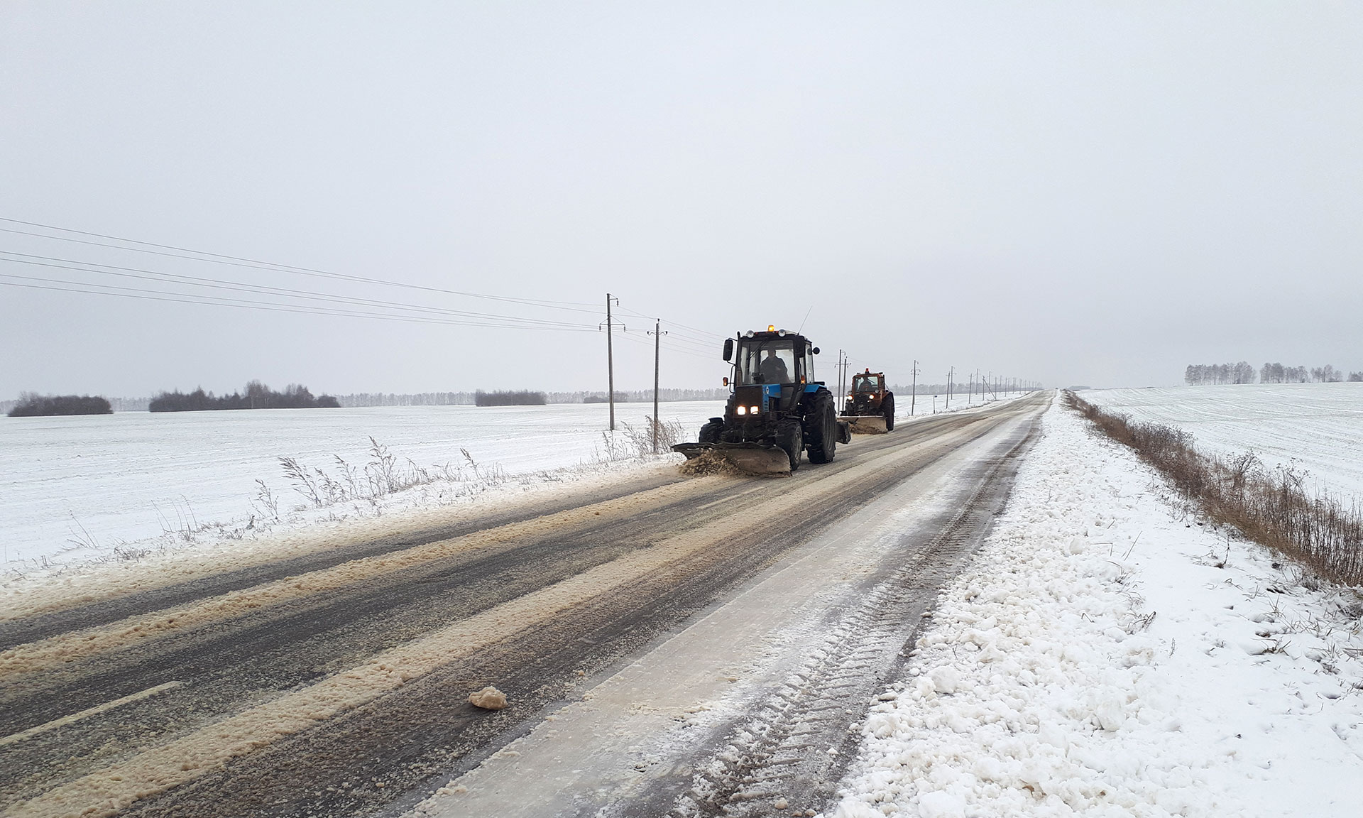 Для обработки автодорог регионального и межмуниципального значения в выходные дни было израсходовано 6395 тонн песко-соляной смеси, обработано около пяти тысяч километров автодорог, задействовано 170 единиц снегоочистительной и пескораспределительной техники. За минувшие сутки израсходована 921 тонна песко-соляной смеси, обработано 820 км автодорог, задействовано 54 единицы техники.