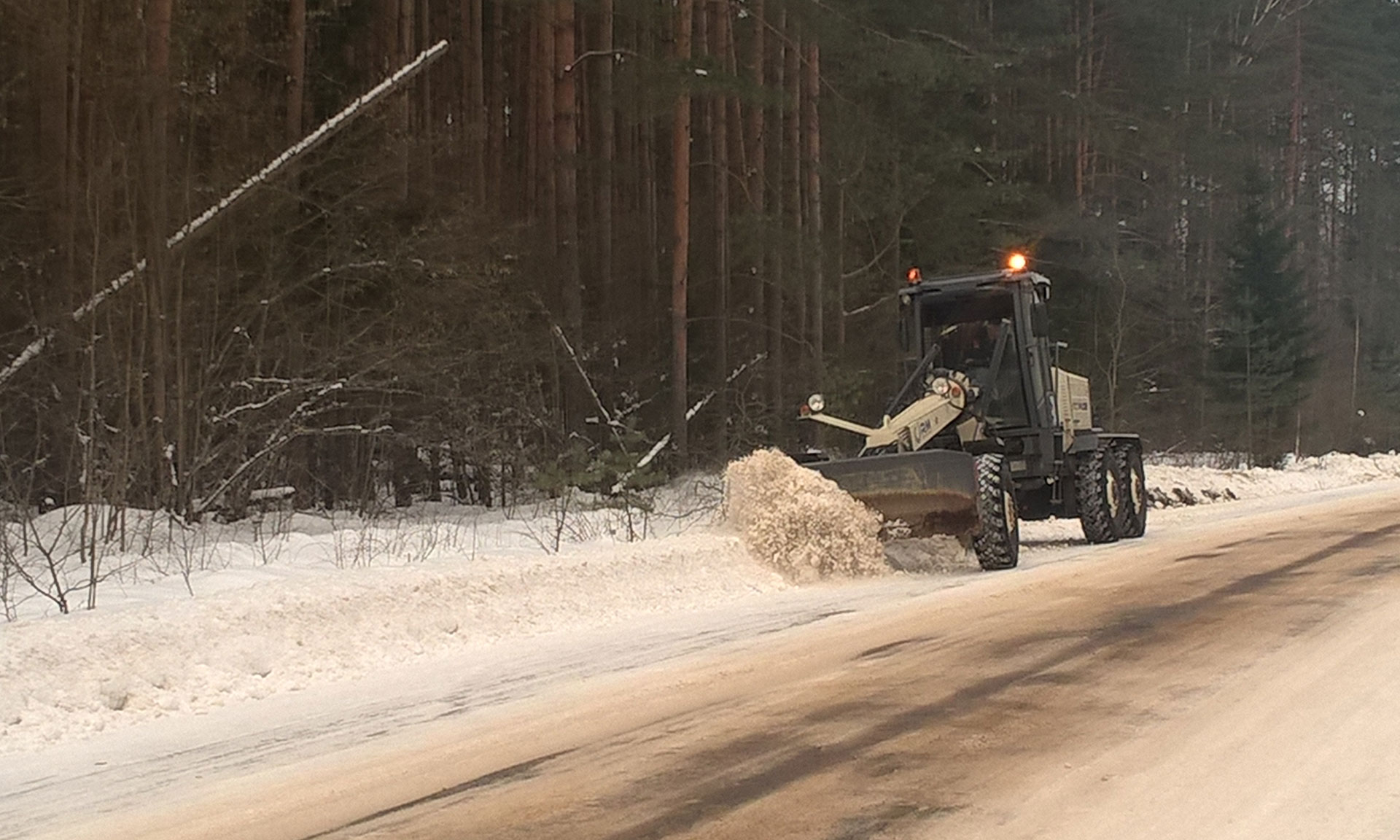 Подрядные организации Управления автомобильных дорог Брянской области ликвидируют последствия снегопада.