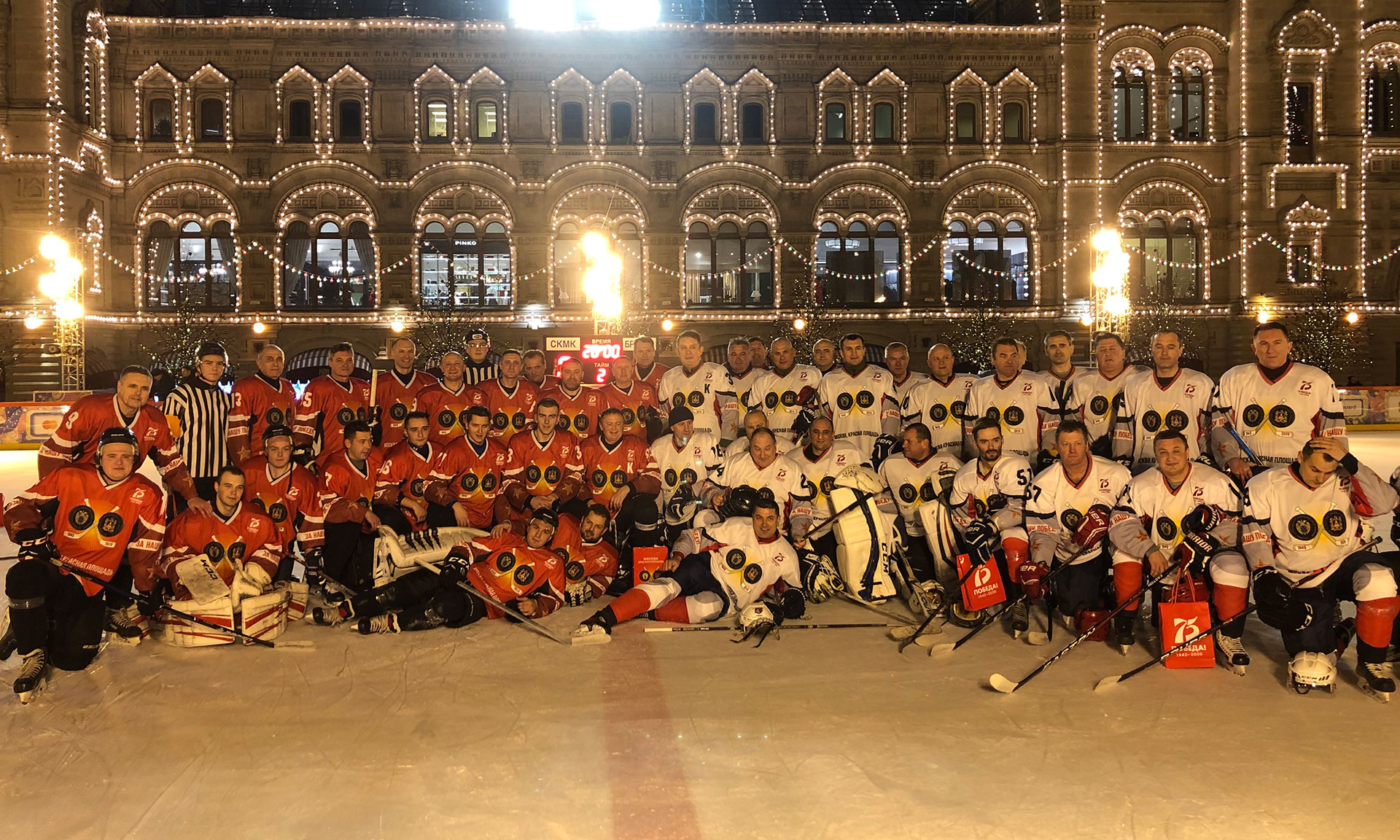 — По доброй традиции в начале года на праздник на ГУМ-катке мы приглашаем наших друзей. В этом году наша страна отмечает великий праздник — 75 лет Победы в Великой Отечественной войне. На спортивный праздник «За нашу Победу» мы пригласили команду из Брянской области, где помнят и чтут героический подвиг советского народа в борьбе с фашизмом. Наш праздник начинается с хоккейного матча, потом всех ждут спортивные эстафеты, игры. Я желаю бескомпромиссной и красивой игры, а гостям праздника — отличного настроения!