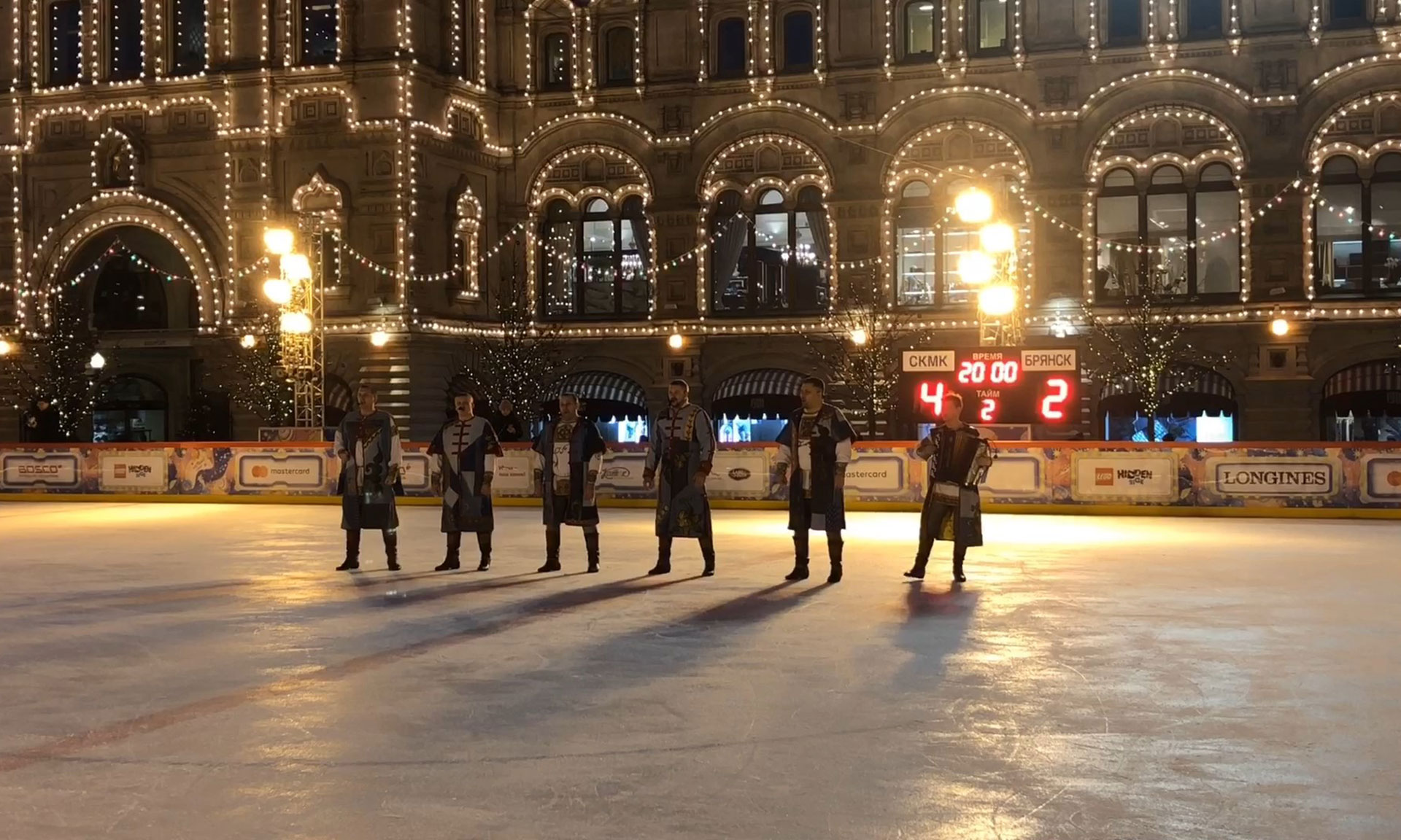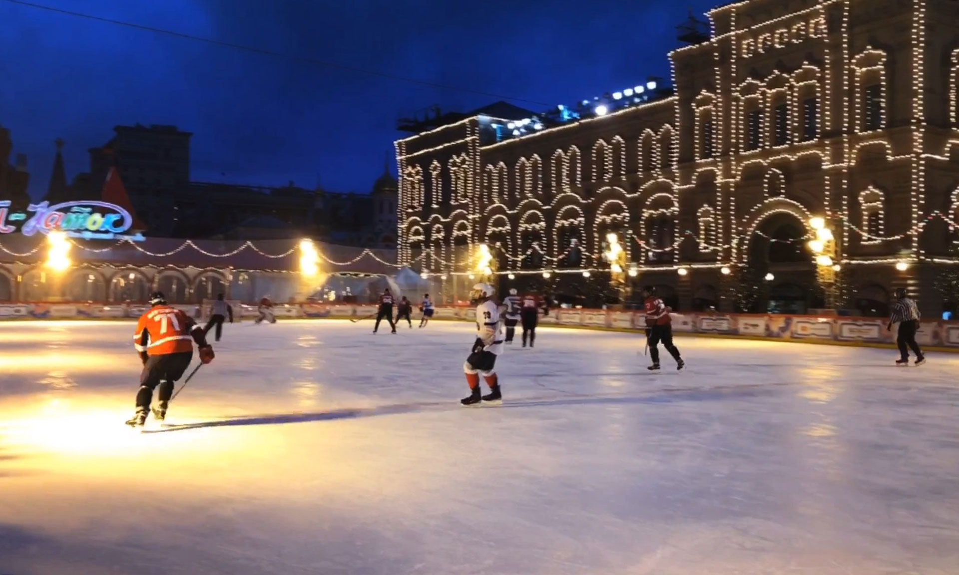 После церемонии награждения всех участников товарищеского хоккейного матча на Красной площади состоялись массовые катания, флэш-моб, эстафеты, катания на каруселях ГУМ-ярмарки, работала полевая кухня, где можно было попробовать настоящую солдатскую гречневую кашу и согреться горячим чаем.