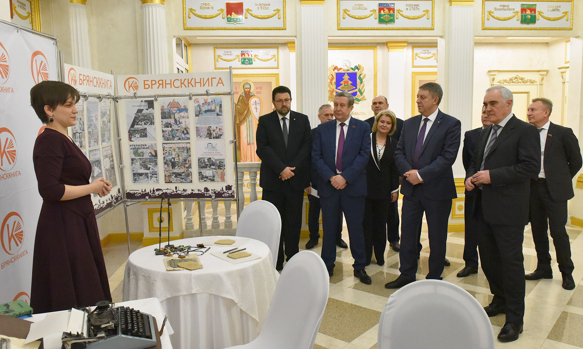 В фойе была развернута интерактивная выставка «Эволюция отрасли печати и информации: от клинописи до интерактива». В Хрустальном зале Правительства Брянской области собрались журналисты и полиграфисты Брянщины, которые отметили свой профессиональный праздник — День российской печати.