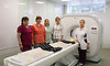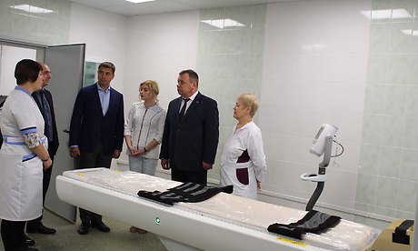 Владимир Оборотов совместно с первым заместителем директора департамента здравоохранения Виталием Мосиным, главой администрации Навлинского района Александром Прудником и главным врачом ГБУЗ «Навлинская ЦРБ» Олесей Пулиной еще раз осмотрели состояние и оснащённость диагностических кабинетов, в которых уже используется приобретенное в этом году оборудование. Зашли в кабинет УЗИ, в котором совсем недавно установлен новый аппарат ультразвуковой диагностики и посмотрели, как работает доктор. Далее основным объектом посещения стал кабинет, в котором в конце прошлого года был установлен компьютерный томограф.
