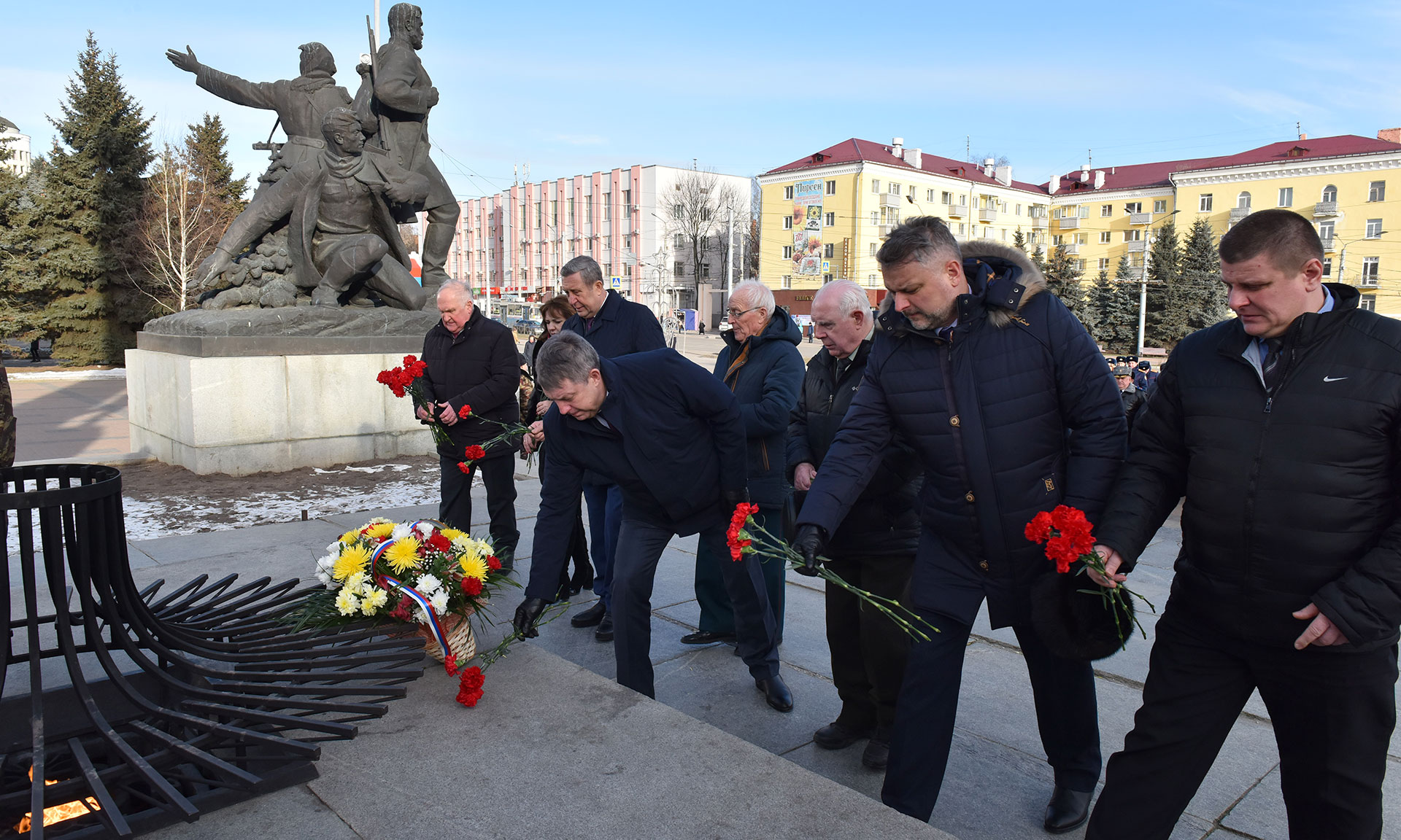 В церемонии возложения цветов приняли участие Губернатор Брянской области Александр Богомаз, председатель Брянской областной Думы Владимир Попков, главный федеральный инспектор по Брянской области Андрей Дьячук, Герой Советского Союза Иван Кашин, Герой Советского Союза Виктор Афанасьев, Герой России Александр Постоялко, член Совета Федерации Галина Солодун, председатель Брянского областного суда Евгений Быков, прокурор Брянской области Александр Войтович, руководители органов исполнительной и законодательной власти области, руководители города Брянска, руководители силовых структур региона, заместители Губернатора Брянской области.