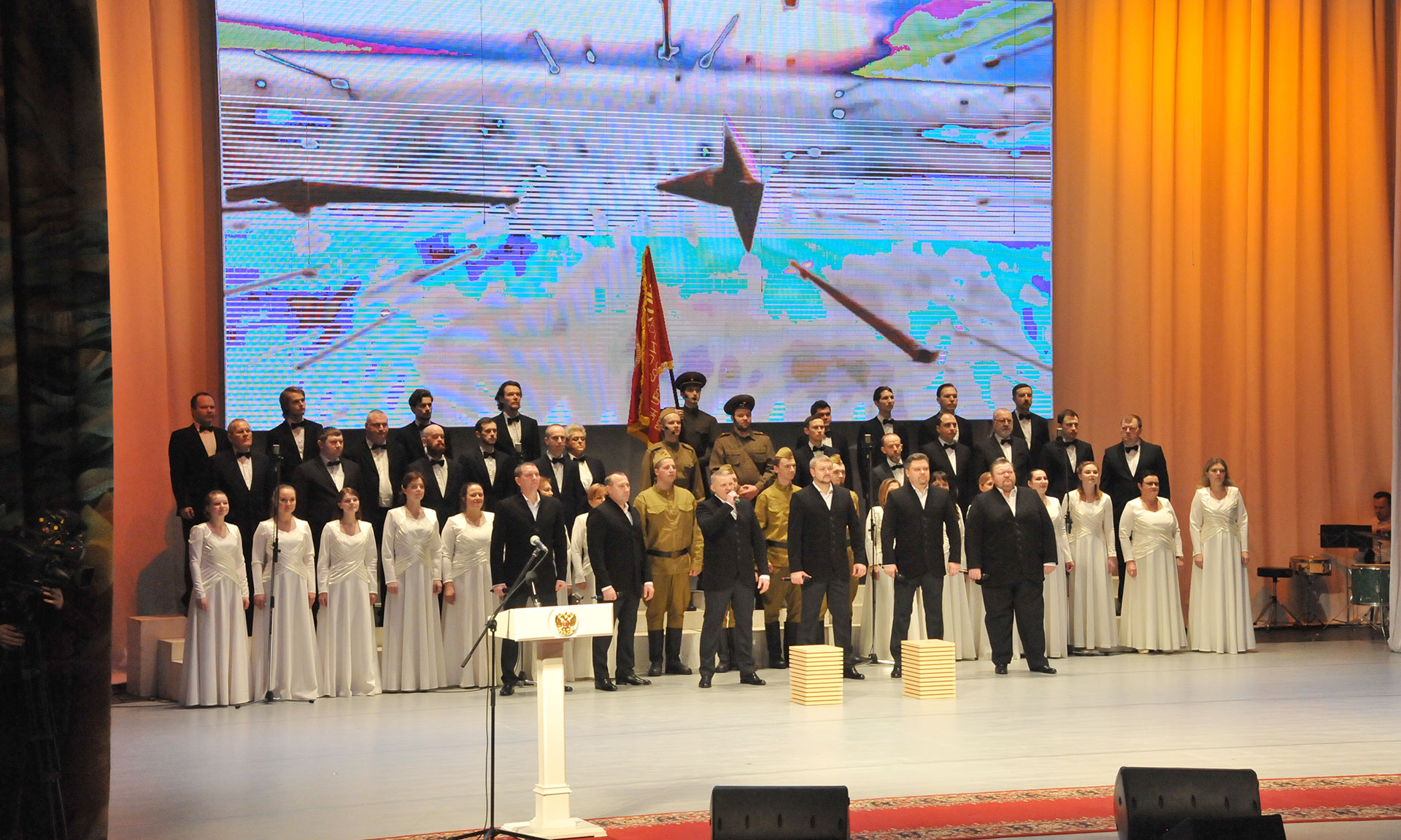 Продолжилось торжественное собрание праздничным концертом с участием лучших творческих коллективов Брянской области и солиста Брянской областной филармонии Александра Добронравова.