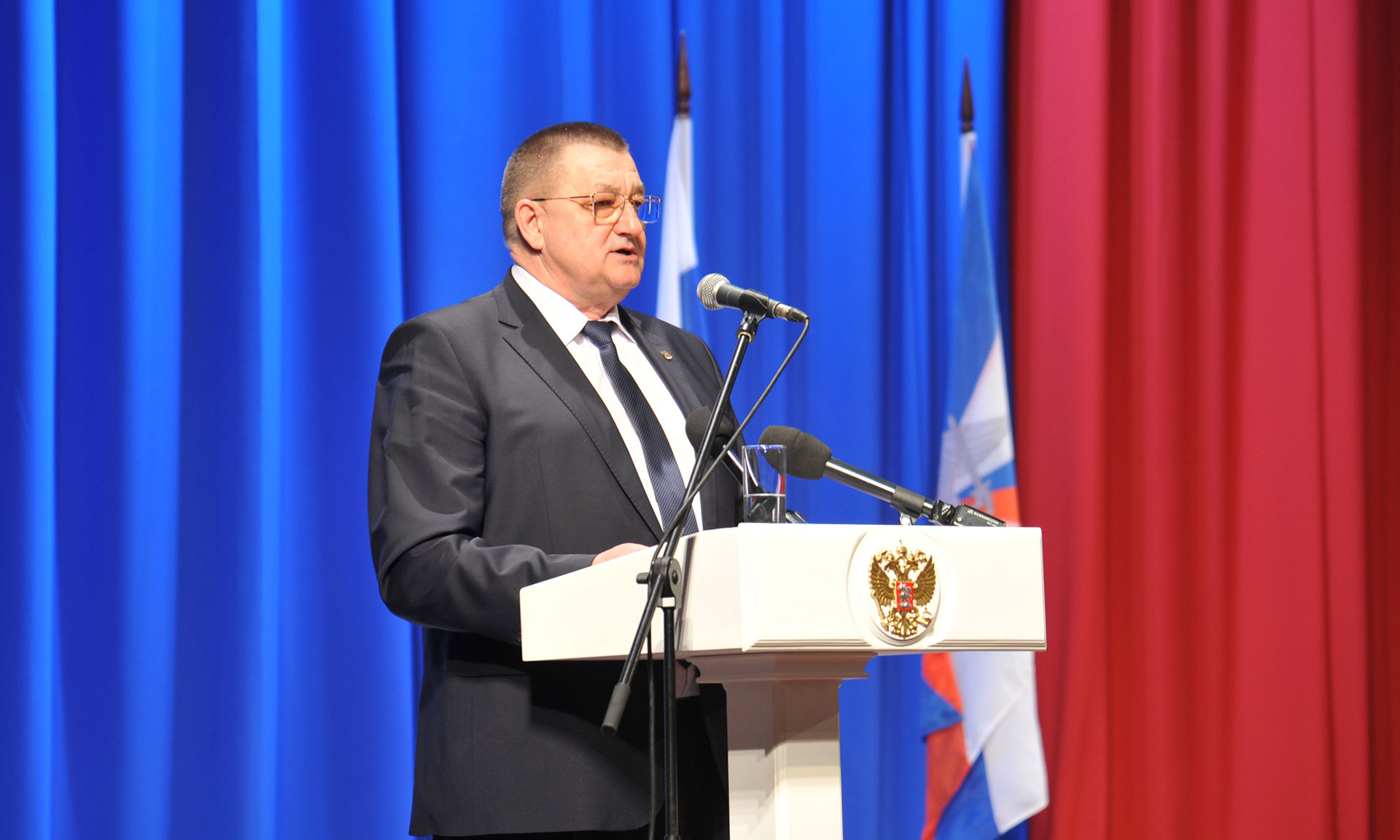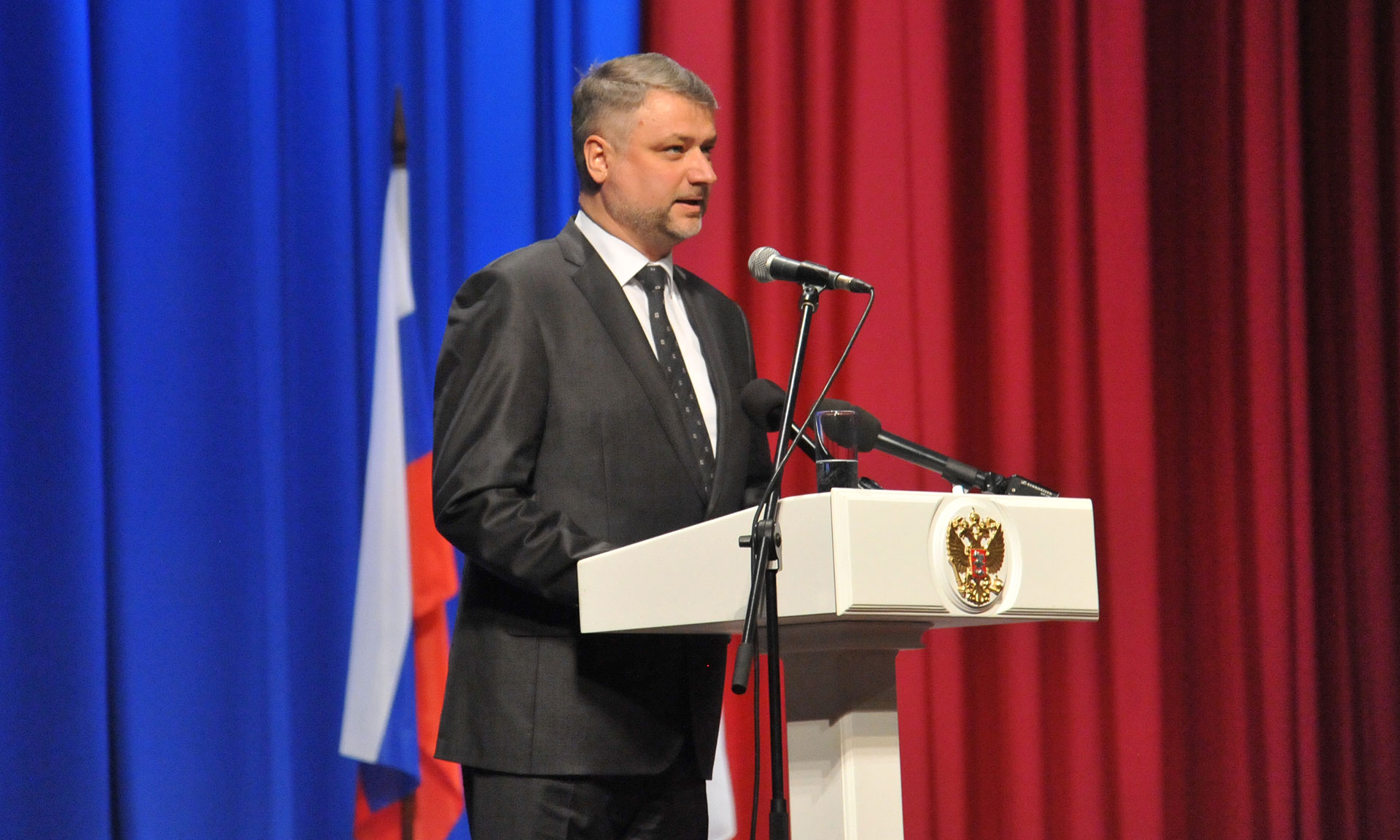 К участникам торжественного собрания обратился исполняющий обязанности Губернатора Брянской области Александр Резунов: