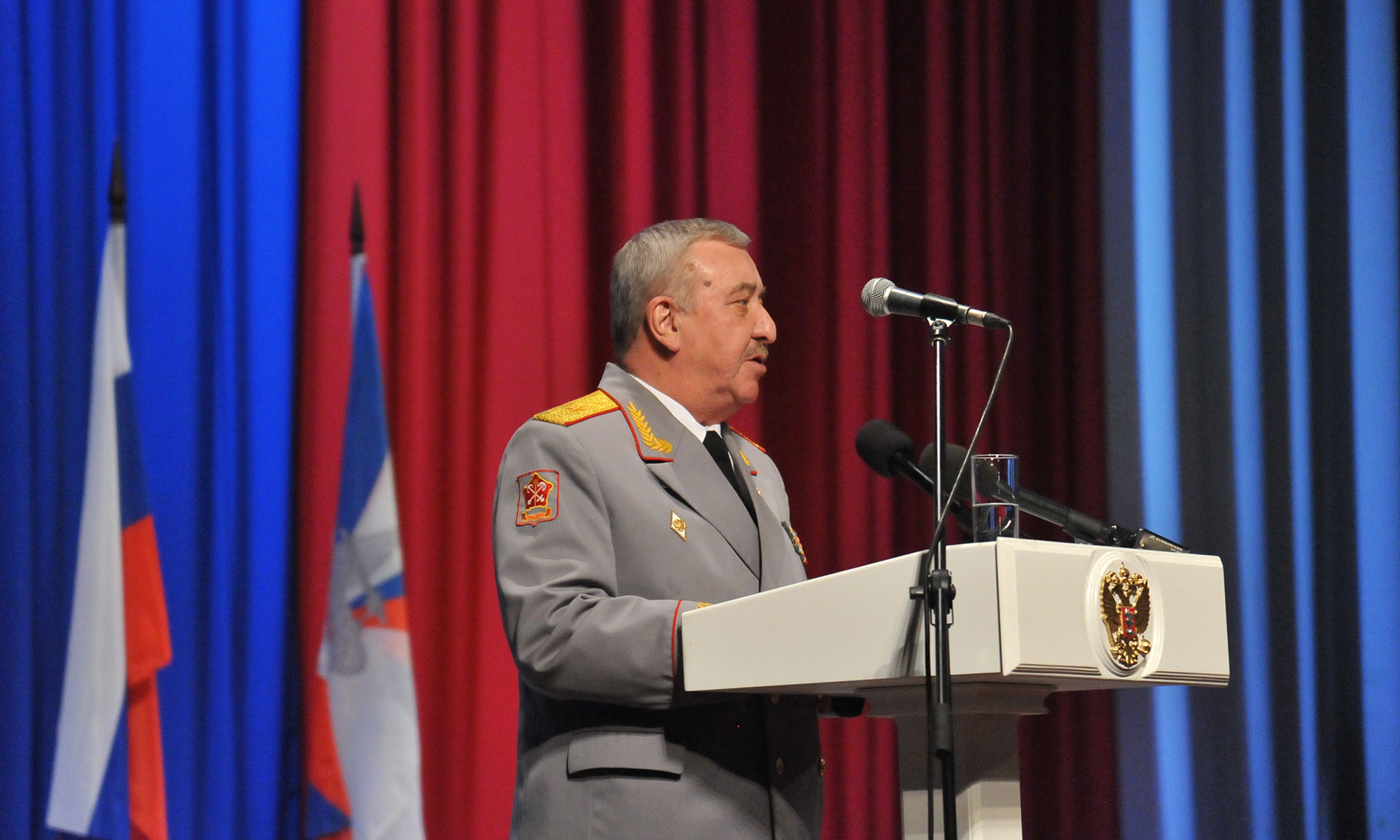— Уважаемые командиры воинских частей и подразделений, воины Брянского территориального гарнизона, ветераны войны и Вооруженных Сил! Участники торжественного собрания! По традиции мы собрались сегодня в этом зале, чтобы поздравить защитников Отечества! Этот всенародный праздник символизирует силу и мужество, честь и доблесть разных поколений российского воинства, славу нашего оружия, стойкость и патриотизм великого народа России. Ни одной стране в мире не выпало столько суровых испытаний, сколько нашей Родине, и ни один народ не одержал столько великих и судьбоносных военных побед в истории мировых сражений.