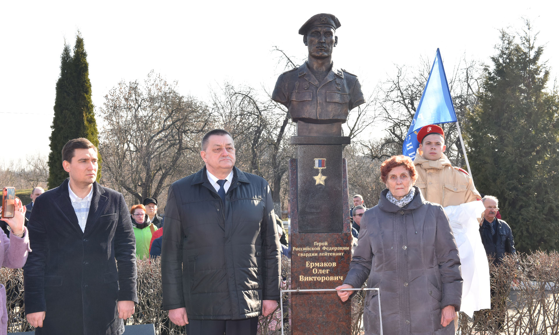 На открытии бюстов присутствовали родители, родственники, друзья погибших героев: мама Олега Ермакова Лидия Филипповна, родители Сергея Василева — Галина Георгиевна и Владимир Фролович, мама Алексея Рассказы Галина Николаевна, мама Александра Трубенка Лидия Тимофеевна, сестры Александра Гердта Мария Александровна и Галина Александровна. Вместе с руководителями региона они открыли бюсты Герою Российской Федерации Олегу Ермакову, Герою Российской Федерации Сергею Василеву, Герою Российской Федерации Александру Гердту, Герою Российской Федерации Алексею Рассказе, награжденному Орденом Мужества Александру Трубенку.