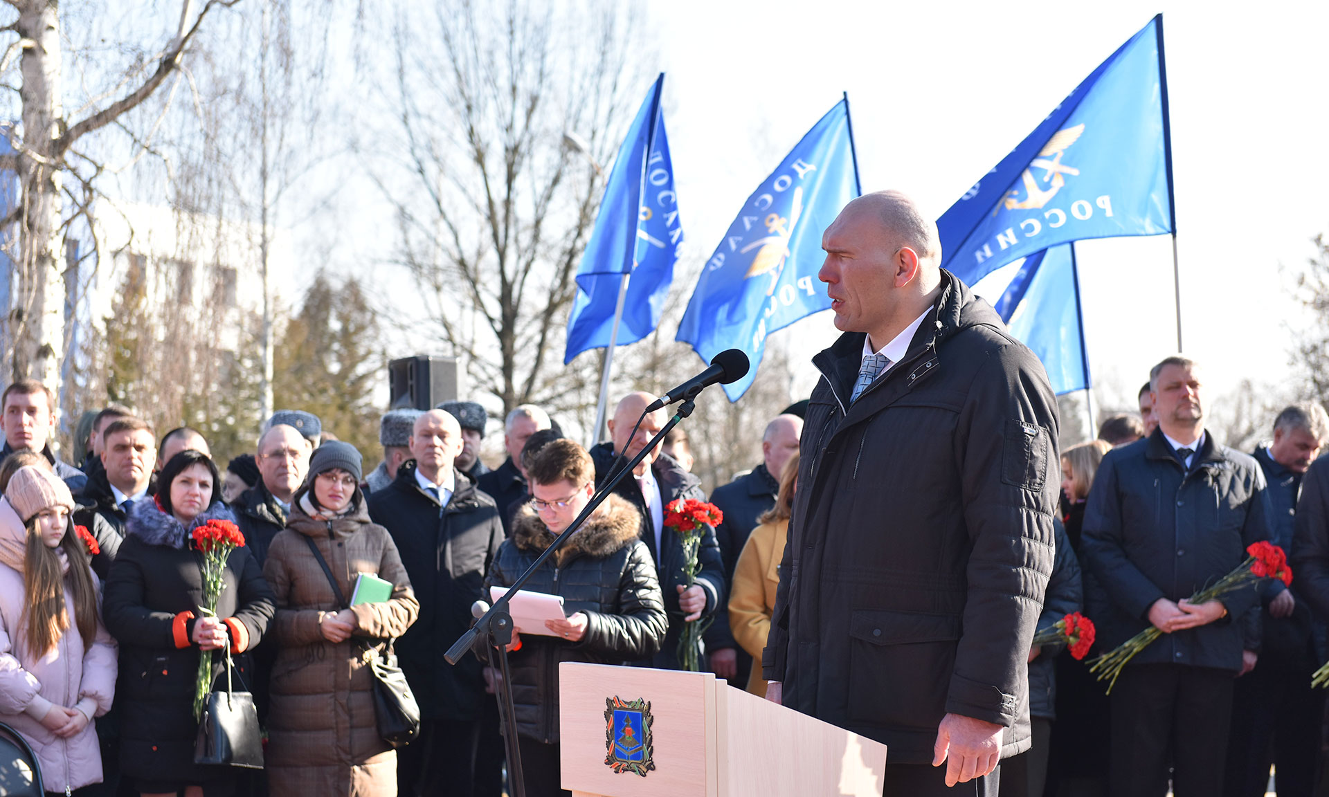 — Дорогие друзья! Сегодня мы отдаем дань памяти героизму и мужеству воинов-десантников, навсегда «ушедших в небо». В 90-е и 2000-е годы наша страна столкнулась со страшной чумой — международным терроризмом. Совсем недавно на этом месте мы вспоминали всех, кто, защищая целостность нашей страны, нес службу в Афганистане, Чечне, на Северном Кавказе. А сегодня мы вновь собрались здесь, чтобы почтить память и увековечить имена пяти наших земляков, бойцов 6-й роты 2-го батальона 104-го гвардейского парашютно-десантного полка 76-й гвардейской воздушно-десантной (Псковской) дивизии.