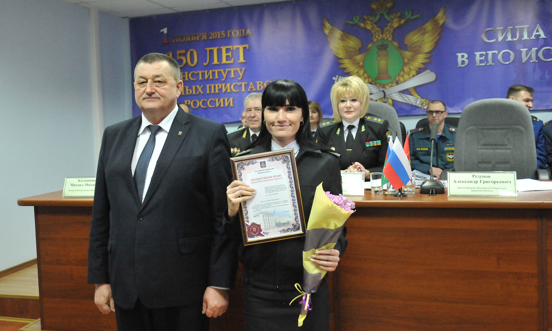 В мероприятии приняли участие советник директора Федеральной службы судебных приставов России Анатолий Кравченко, заместитель председателя Брянской областной Думы Владимир Пронин, федеральный инспектор по Брянской области Михаил Калашников, председатель Брянского областного суда Евгений Быков, руководители силовых структур, федеральных служб и ведомств Брянской области.