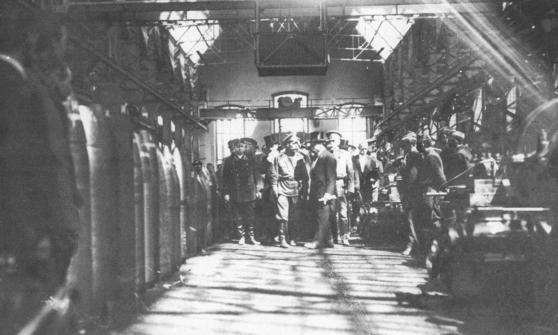 «20 апреля. Понедельник. В 9 часов прибыл в Бежицу на Брянский завод. После встречи пошел в церковь и оттуда на моторе по мастерским. Видел много интересного и для себя поучительного. С трех часов продолжал осмотр мастерских и прекрасно устроенной выставки. Заехал в 2 дома рабочих, больницу, хлебопекарню и лазарет на 500 раненых. В 6.20 уехал обратно в Орел, очень довольный всем виденным».
