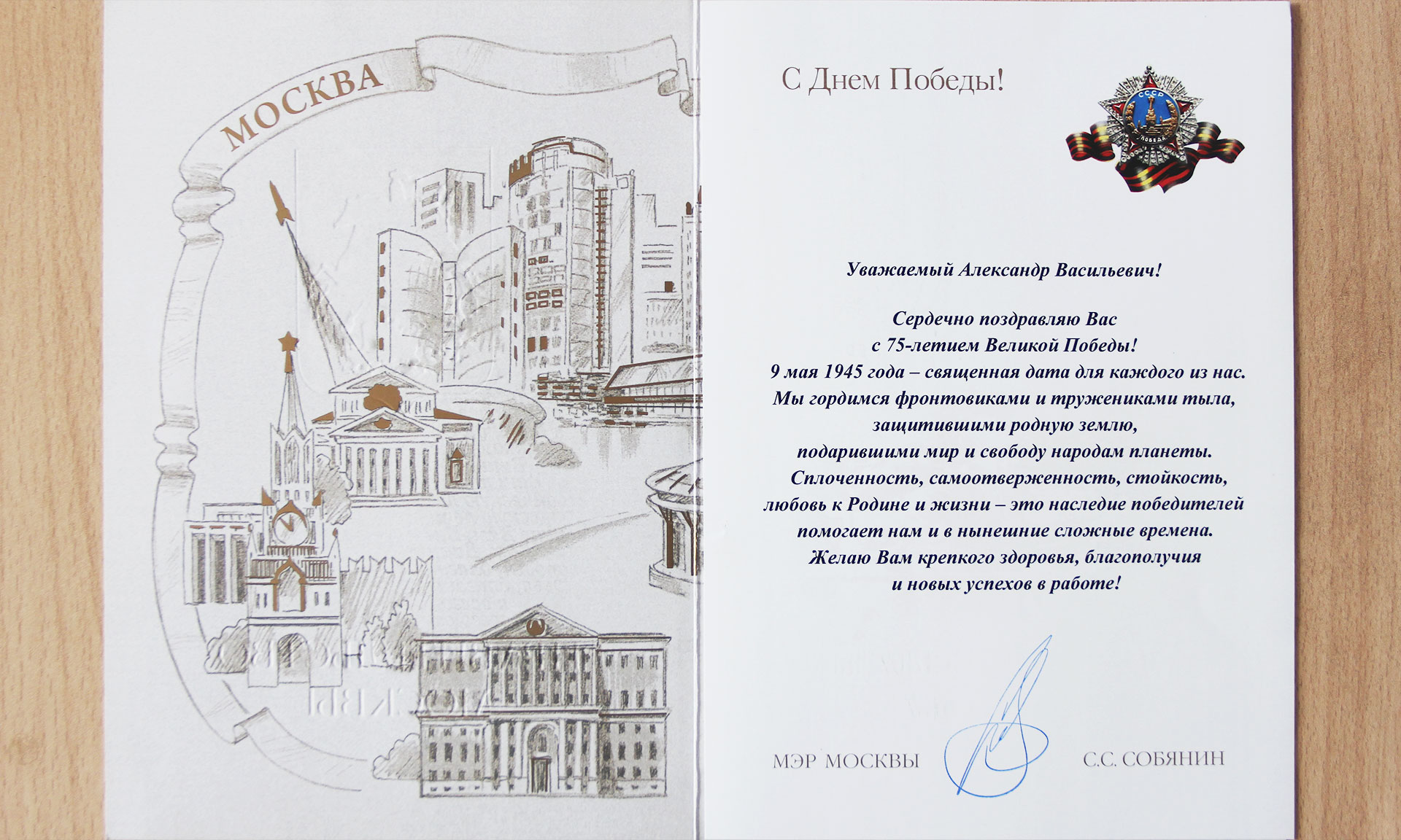 Желаю Вам крепкого здоровья, благополучия и новых успехов в работе!»