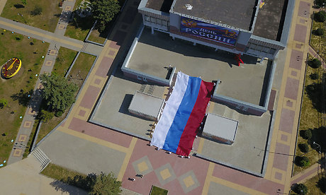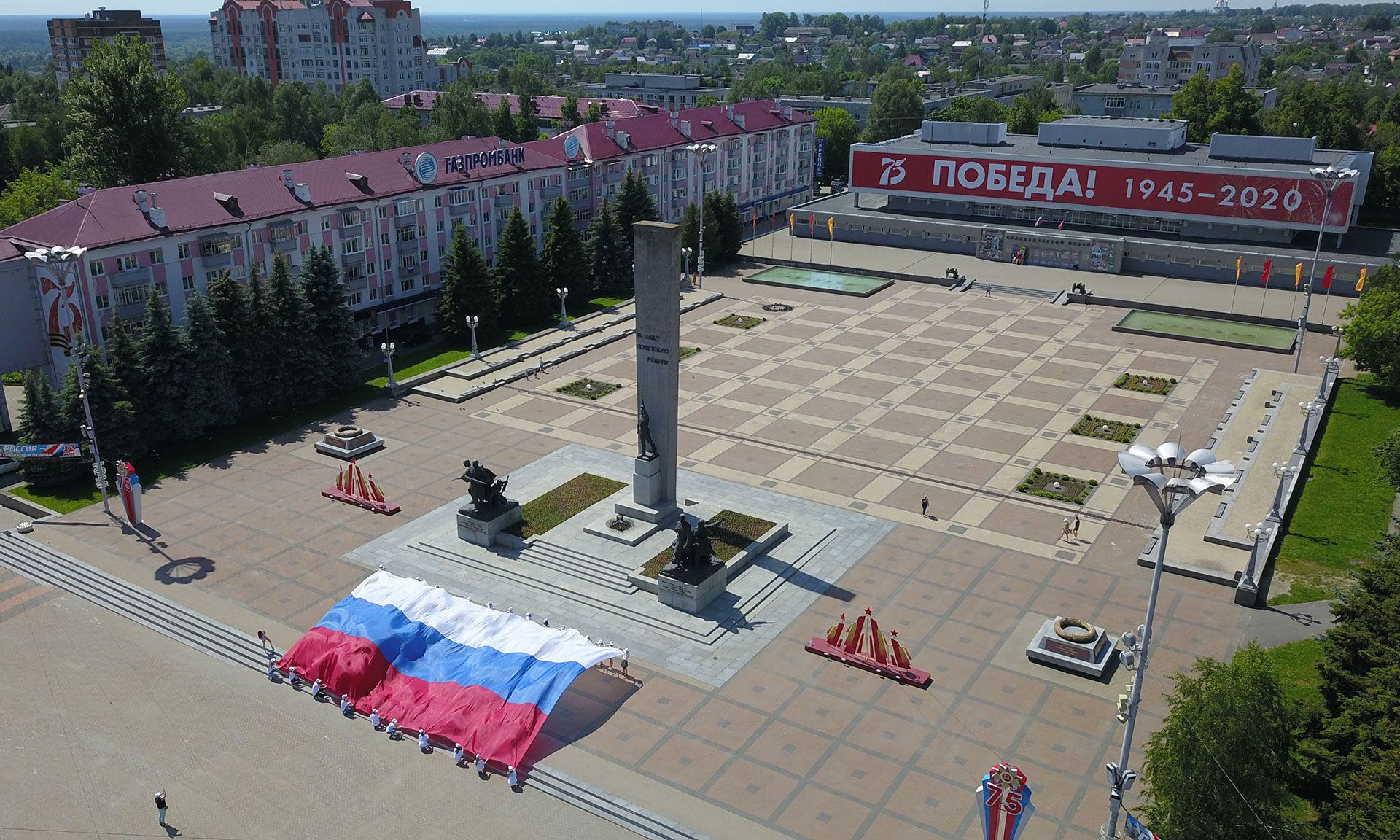 Волонтеры Брянщины развернули российский флаг в знаковых местах области