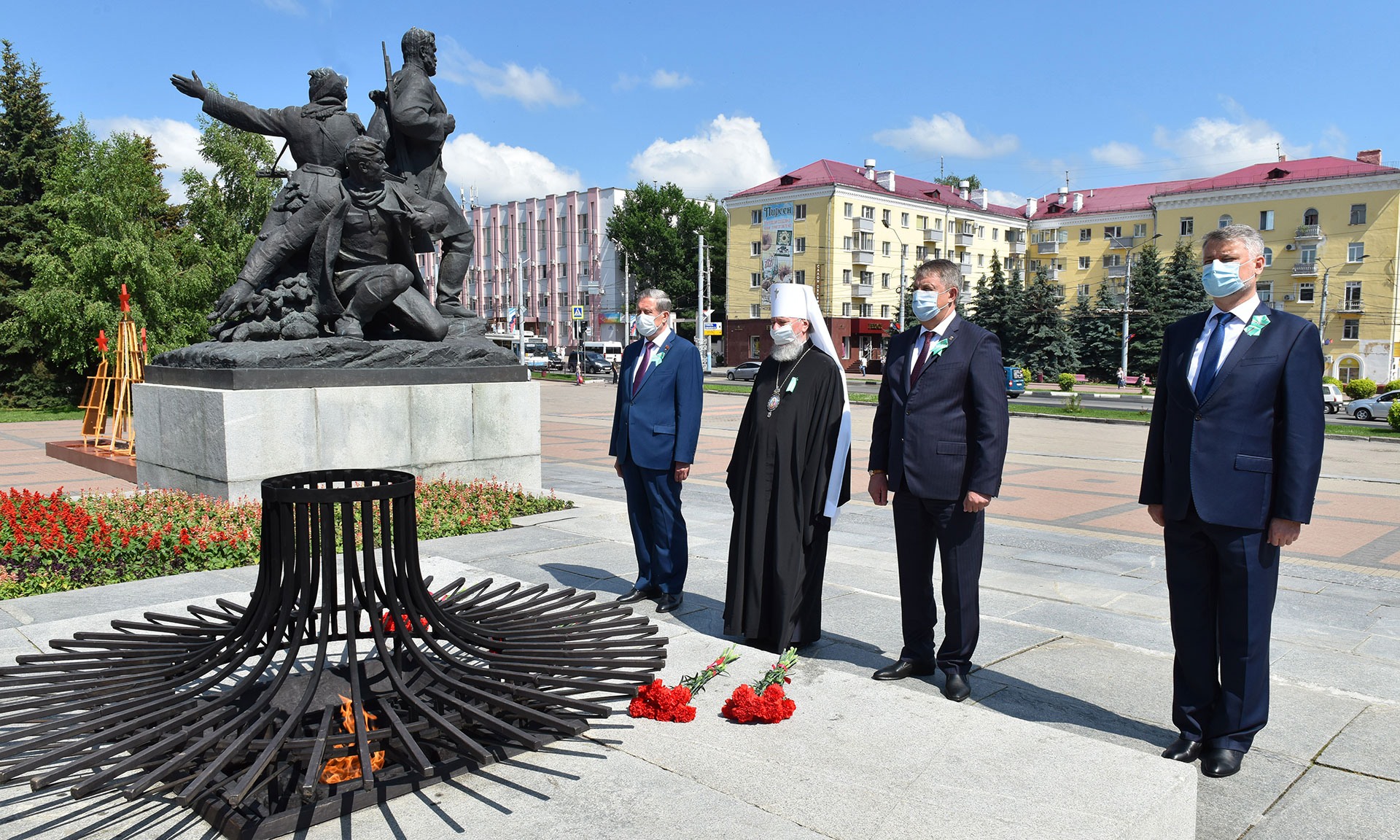 В знак памяти и благодарности к подвигу партизан и подпольщиков, отдавших жизни в борьбе за свободу и независимость Родины, цветы к вечному огню на площади Партизан возложили Губернатор Брянской области Александр Богомаз, председатель Брянской областной Думы Владимир Попков, главный федеральный инспектор по Брянской области Андрей Дьячук и Митрополит Брянский и Севский Александр.