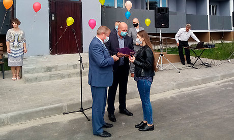 Церемония вручения ключей происходила красочно и торжественно. Новосёлы получили множество наилучших пожелания.