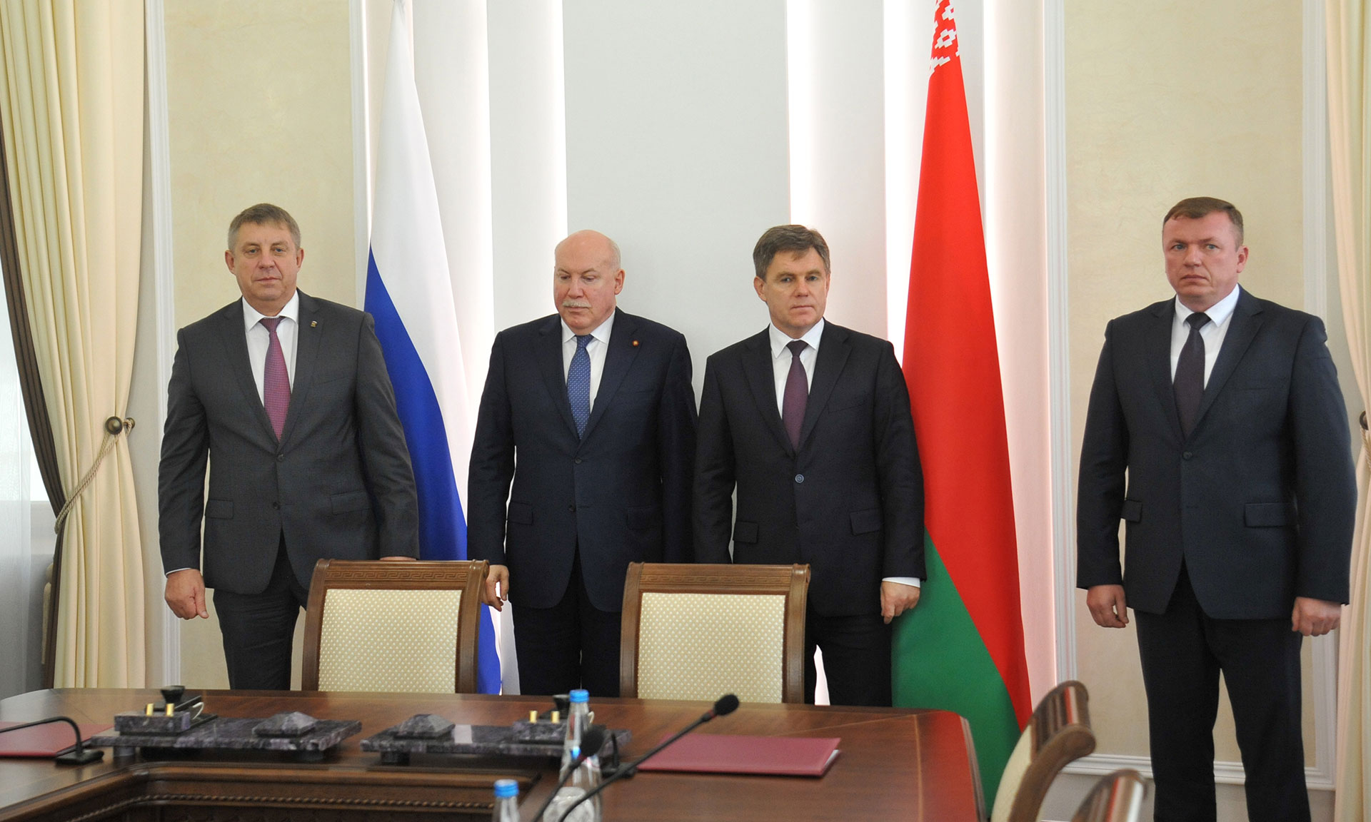 От Республики Беларусь во встрече приняли участие председатель Гомельского областного исполнительного комитета Геннадий Соловей, Министр архитектуры и строительства Республики Беларусь Руслан Пархамович, Министр сельского хозяйства и продовольствия Республики Беларусь Иван Крупко, Министр промышленности Республики Беларусь Петр Пархомчик, Председатель концерна «Белгоспищепром» Анатолий Бубен, заместитель начальника главного управления международного сотрудничества и торговли — начальник управления международного сотрудничества Аппарата Совета Министров Республики Беларусь Татьяна Туровец, заместитель начальника управления России главного управления России, стран СНГ и евразийской интеграции Министерства иностранных дел Республики Беларусь Вадим Захарчук, советник отделения Посольства Республики Беларусь в Российской Федерации в Смоленске Сергей Мисурагин, председатель Совета директоров ОАО «АМКОДОР» — управляющая компания холдинга» Александр Шакутин, генеральный директор ОАО «Гомсельмаш» — управляющая компания холдинга «ГОМСЕЛЬМАШ» Александр Новиков.