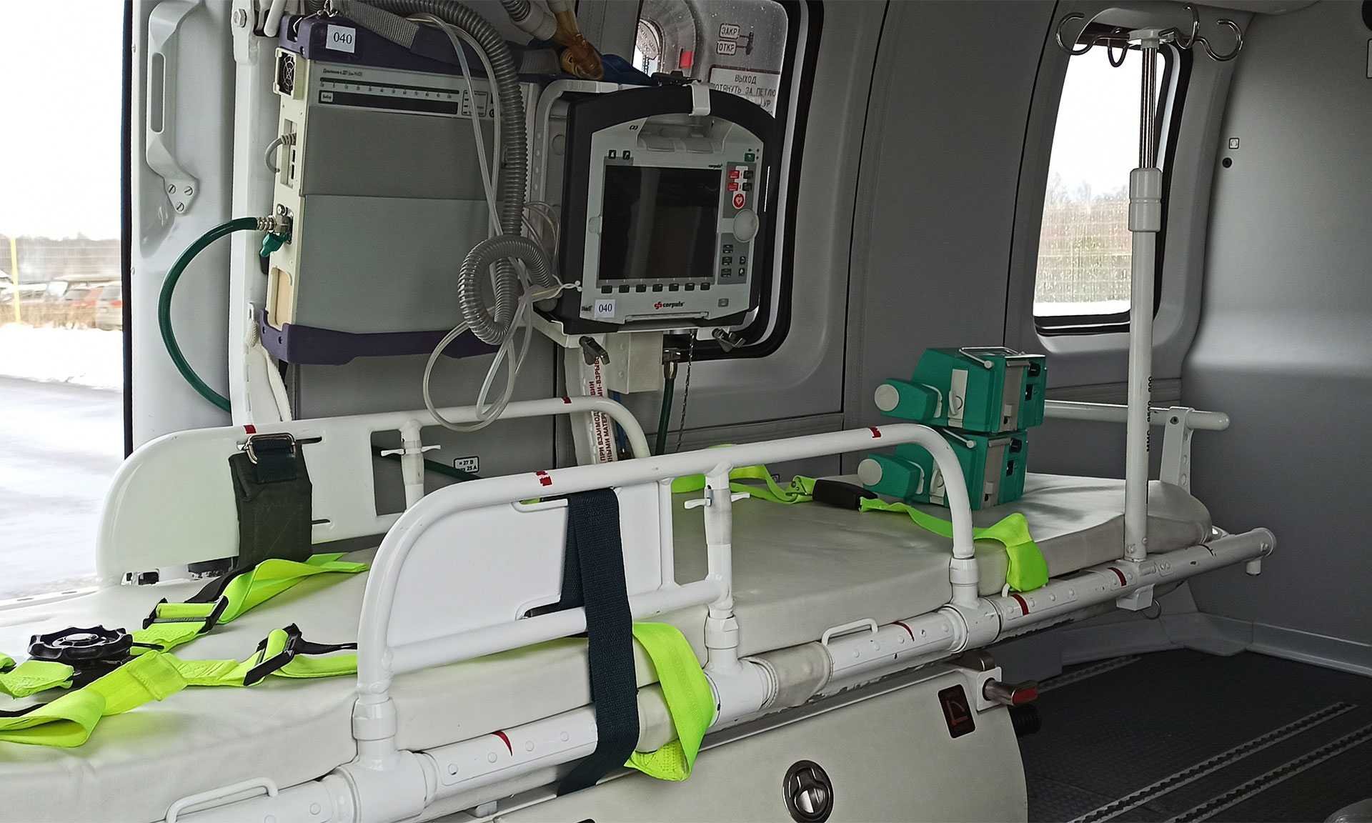 Вертолет оснащен реанимационной техникой, жизнеобеспечивающей перевозку тяжелобольных. Он предназначен для медицинской эвакуации пациентов с различной патологией: кардиологические болезни, острое нарушение мозгового кровообращения, тяжелые травмы после ДТП. Также он позволяет оказывать реанимационную помощь детскому населению.