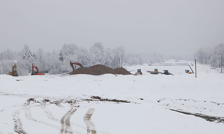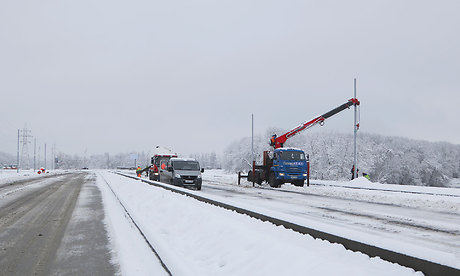 На мосту через реку Снежеть дорожники укладывают выравнивающий слой бетона. Для этого здесь сооружены теплицы, в которых газовыми пушками поддерживается постоянная положительная температура, соблюдаются другие технические условия