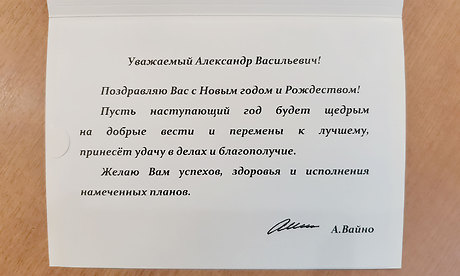 Желаю Вам успехов, здоровья и исполнения намеченных планов».