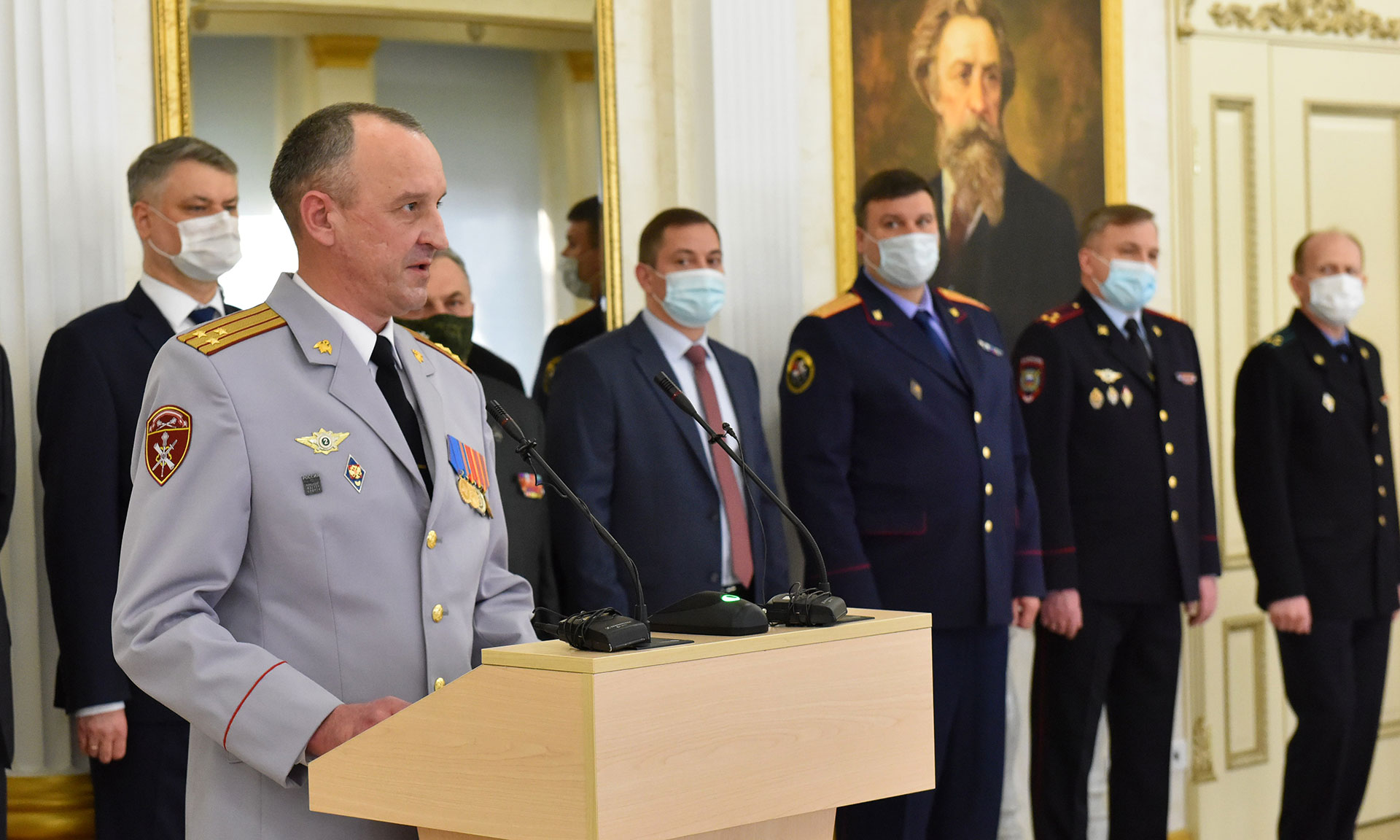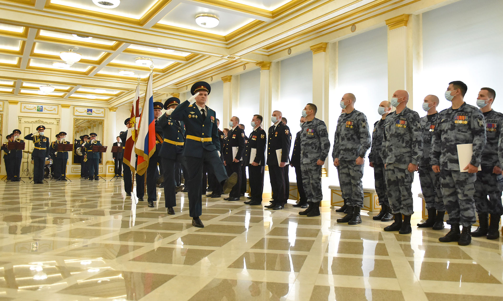 В прошлом году весь мир столкнулся с новой угрозой — коронавирусной инфекцией. И если врачи боролись и продолжают бороться за жизнь и здоровье граждан, то вас я хочу поблагодарить за охрану порядка на объектах здравоохранения. Слова особой признательности всем ветеранам службы. Спасибо вам за мужество и честь, доблесть и отвагу, за верность Отчизне и профессионализм!