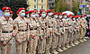 Под звуки «Марша Преображенского полка» в исполнении военного оркестра войск управления национальной гвардии России по Брянской области почетный караул пограничного управления ФСБ России по Брянской области внес копию знамени Победы и флаг Российской Федерации.