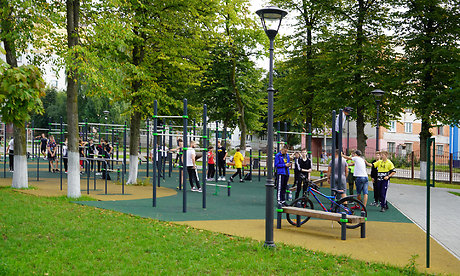 В основу ландшафтно-планировочного замысла положена идея создания геометрически выверенного пространства. В соответствии с этой концепцией выбрана строгая геометрическая форма детской площадки, воркаут-площадки.