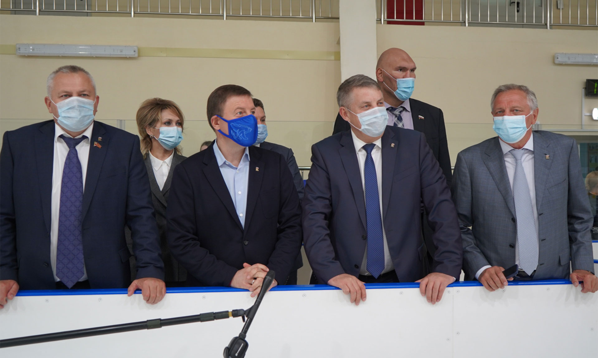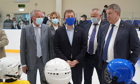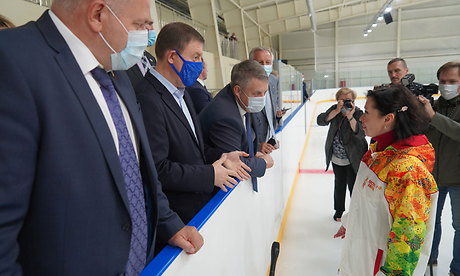 В ледовом дворце гости наблюдали за тренировочными занятиями. Ледовый дворец был построен за счет средств областного бюджета и открыт в прошлом году. Главное, как подчеркивает Александр Богомаз, чтобы детей воспитывали тренеры, влюбленные в свое дело и готовые даже переехать из столицы в сельскую местность, если там созданы все условия для работы и гарантирована достойная заработная плата.