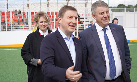В рамках рабочей поездки первый заместитель председателя Совета Федерации Федерального Собрания Российской Федерации Андрей Турчак и Губернатор Брянской области Александр Богомаз посетили спортивные объекты Стародубского муниципального округа.