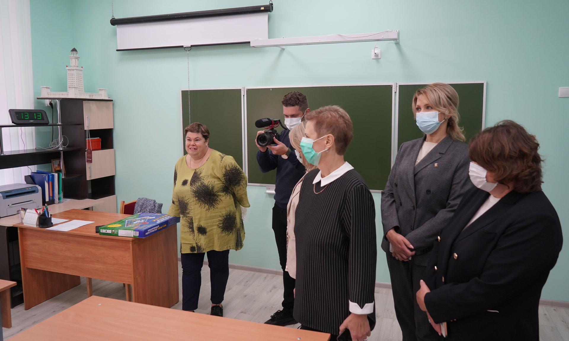 Еще один объект образования, который посетили руководители региона, — школа № 34 Володарского района. Она была капитально отремонтирована в 2020 году, в год своего 75-летия. На эти цели из консолидированного бюджета было выделено 35,6 млн рублей. Во время ремонтных работ от прежних сооружений школы остались только внутренние части стен, все остальное было демонтировано. В двух корпусах менялись все инженерные коммуникации, полы, потолки, окна и двери, сантехника.