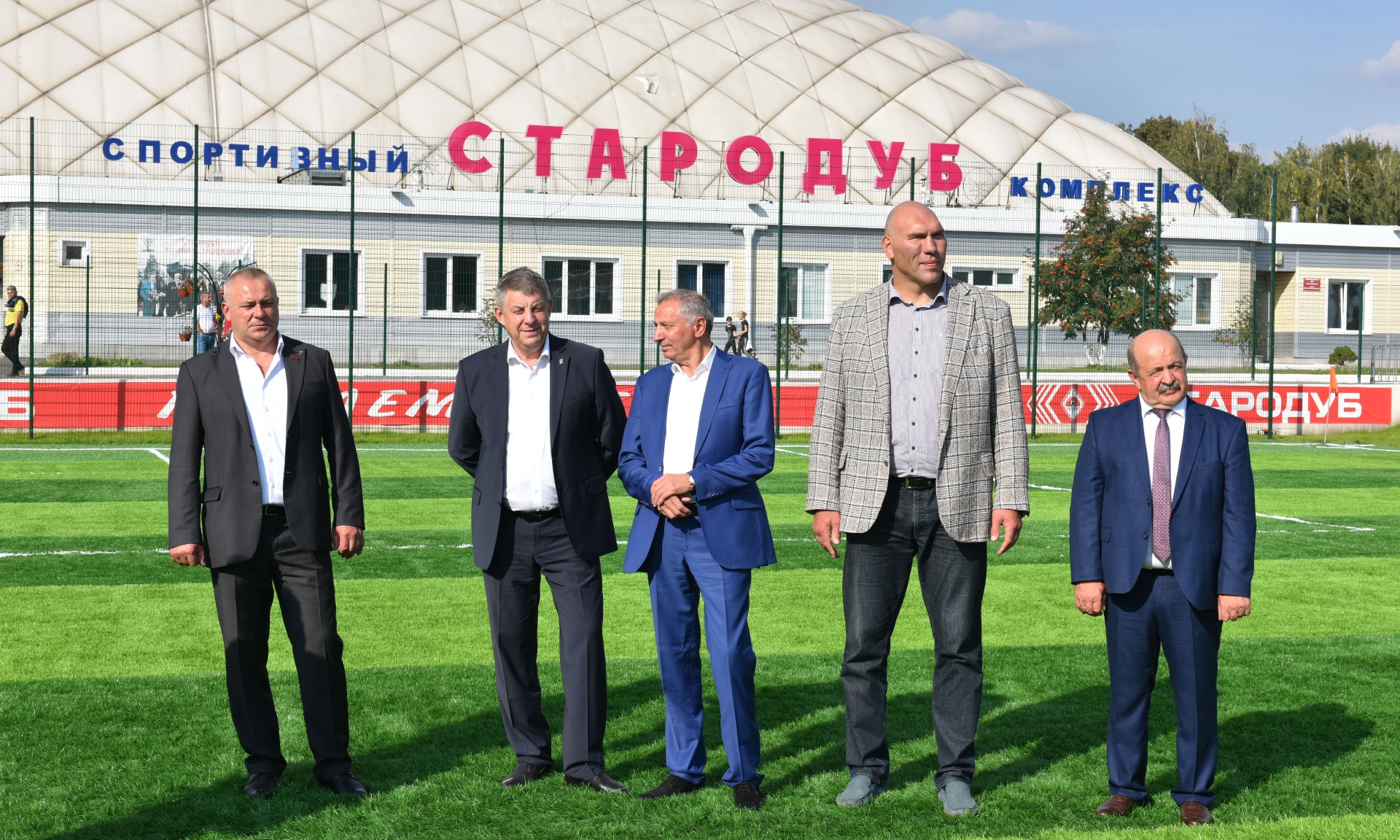В церемонии торжественного открытия спортивного объекта приняли участие Губернатор Брянской области Александр Богомаз, председатель Брянской областной Думы Валентин Суббот, первый заместитель председателя комитета Государственной Думы Федерального Собрания Российской Федерации по экологии и охране окружающей среды Николай Валуев, Герой Социалистического Труда, полный кавалер ордена Ленина, заслуженный агроном РСФСР, заслуженный работник сельского хозяйства Брянской области, депутат Брянской областной думы, генеральный директор ООО «Красный Октябрь» Георгий Лобус, глава администрации Стародубского муниципального округа Александр Подольный, глава Стародубского округа Николай Тамилин.