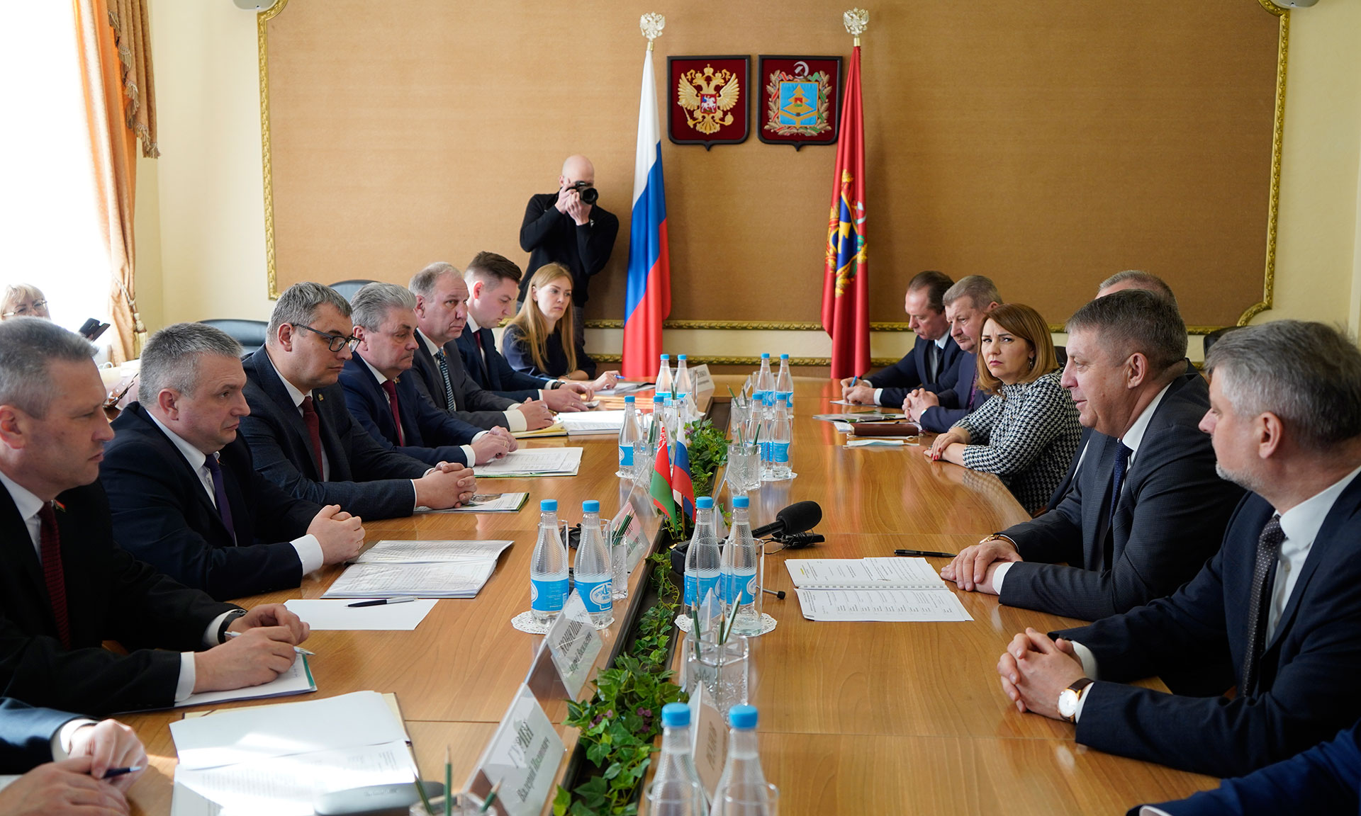 25 марта в Правительстве Брянской области состоялась рабочая встреча Губернатора Брянской области Александра Богомаза с делегацией Республики Беларусь, которую возглавляет председатель Гомельского облисполкома Иван Крупко.