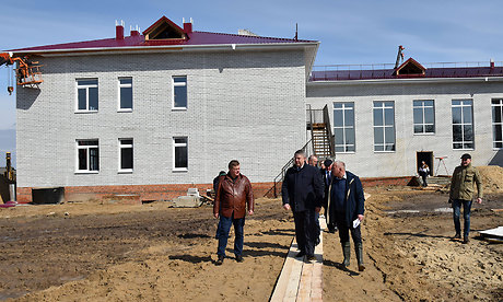 В настоящее время подрядчиком завершены работы по возведению зданий школы-сада, гаража и овощехранилища, установке блочной котельной с монтажом дымовой трубы. Смонтированы наружные сети теплотрассы, водопровода, канализации и газопровода низкого давления. Установлены противопожарные резервуары для воды. Завершаются работы по устройству кровли. Ведутся работы по устройству внутренних перегородок на металлическом каркасе, монтажу оконных блоков, разводке внутренних сетей коммуникаций и вентиляции, штукатурные работы.