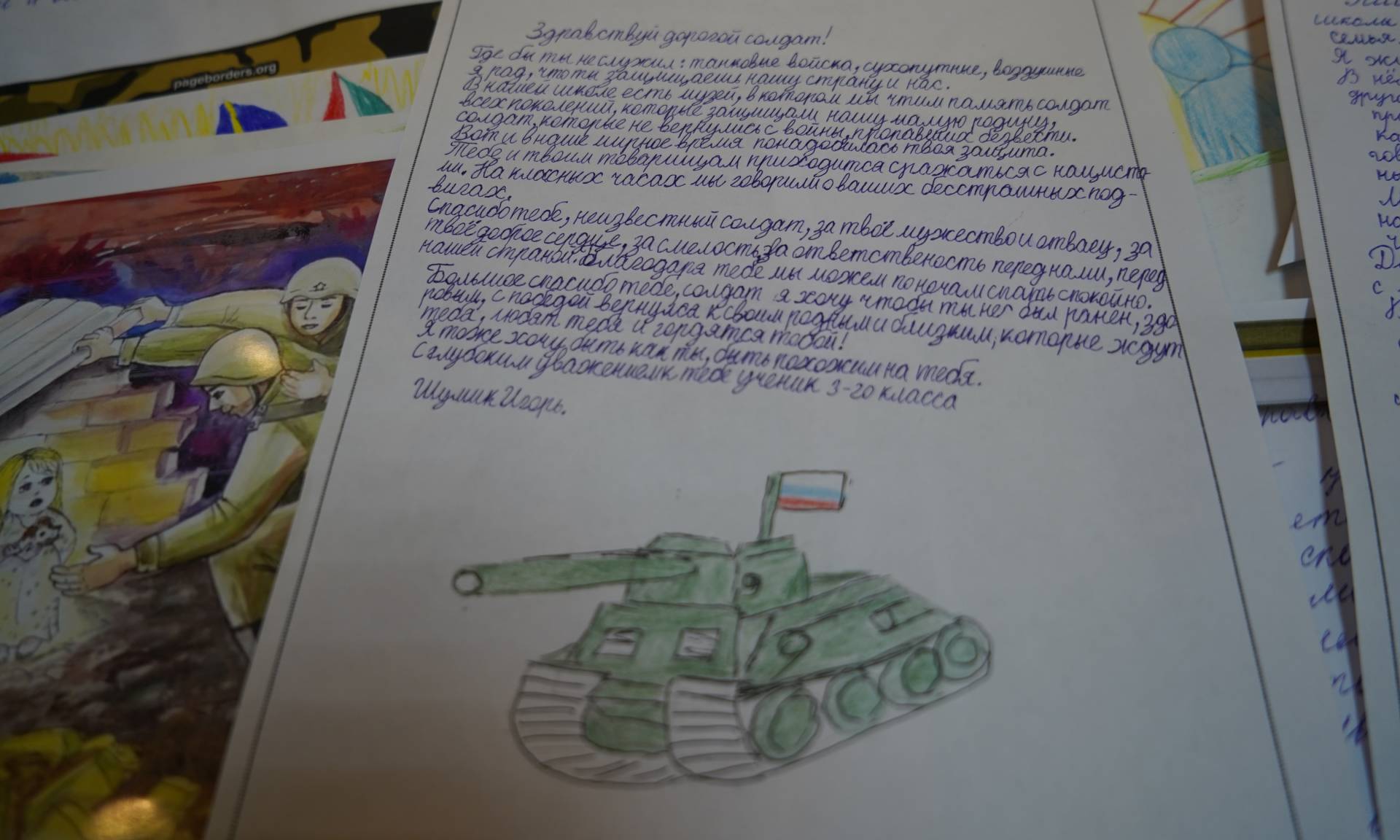 — В школе мы писали письмо. Вы не представляете, как я была рада, когда мне сказали, что мне пришел ответ. Можно прочитаю? «Здравствуй, Дарья! Спасибо тебе за письмо, было очень приятно читать. Обещаю тебе, что после победы приедем к вам с подарками. Желаем тебе, друзьям, преподавателям и родственникам крепкого богатырского здоровья, а мирное небо над головой мы обеспечим! Занимайтесь спортом, любите нашу Родину. Россия — самая великая и могучая страна на свете, ее границы нигде не заканчиваются. До скорой встречи! Наше направление — победа!»