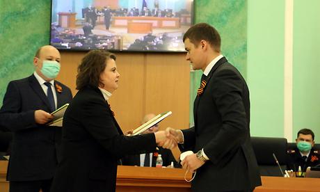 Затем Валентин Суббот вручил удостоверения и нагрудные знаки за особые заслуги работникам спортивных учреждений и сферы жилищно-коммунального хозяйства, которым были присвоены почетные звания.