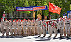 Парадный расчет кадетских классов средней общеобразовательной школы № 58 города Брянска возглавил учитель ОБЖ, методист, Гвардии подполковник Евгений Федоров.